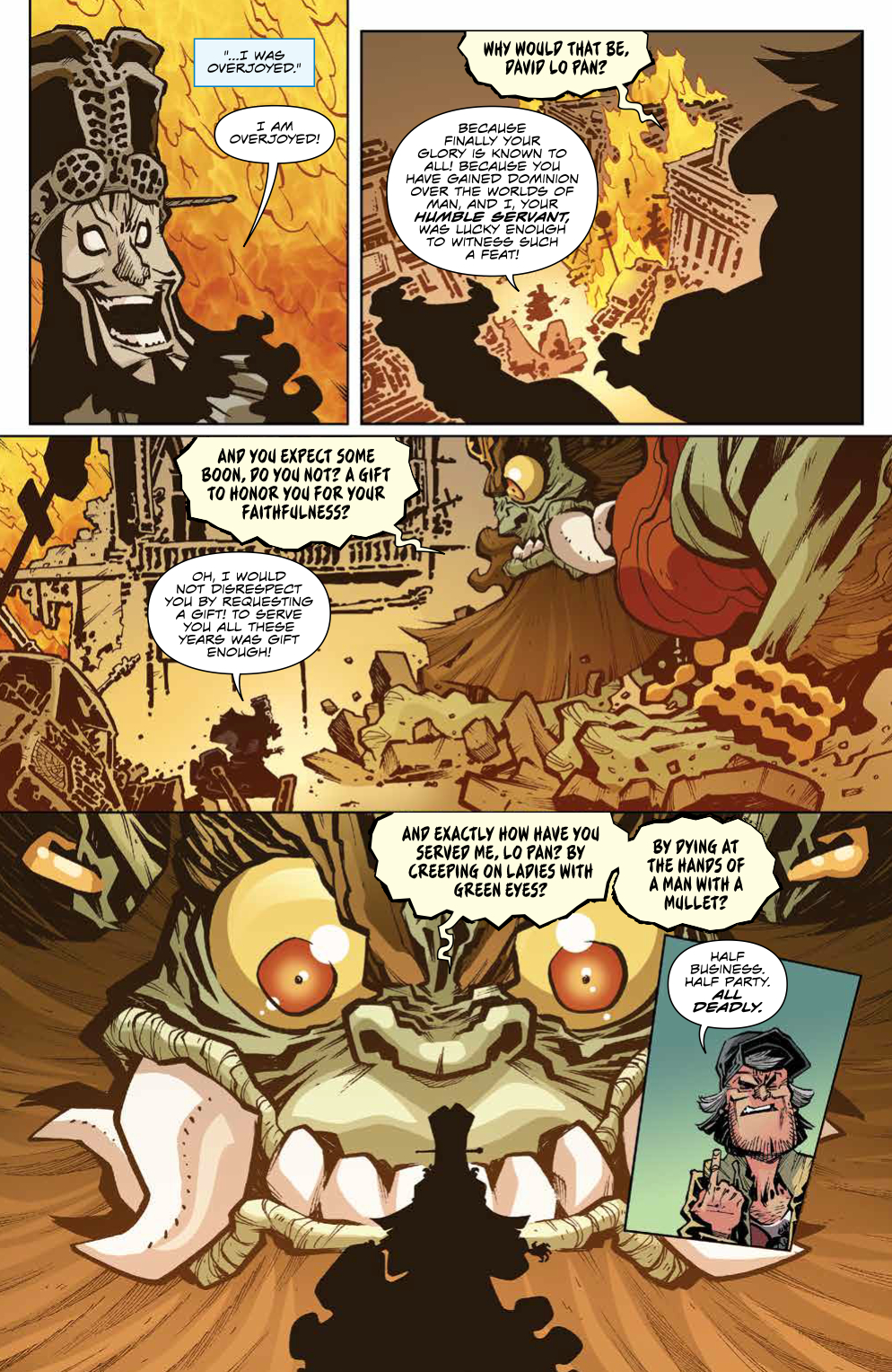 Synopsis: Jack and Lo Pan have a less-than-friendly reunion and are forced to team up on the hellish road to Chinatown.