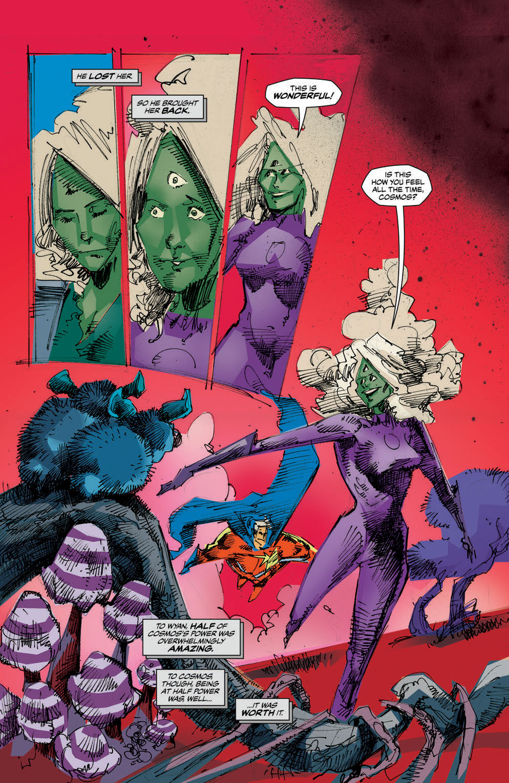 COSMOS has been mortally wounded by THE PENUMBRA, and his explosive death could destroy a universe! In order to save countless lives, WYAN must help him get to the legendary WHITE HOLE AT THE CENTER OF THE UNIVERSE– where they mythical LIVING ASTEROIDS are standing guard! Grab your tissues and hold onto your seats, cosmic comic fans, ’cause it’s the FINAL chapter of THE BIGGEST BANG!