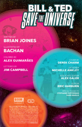 PreviewsBOOM! Studios Previews BILL & TED SAVE THE UNIVERSE #3 By Comix Asylum - Aug 11, 2017 0 746 FacebookTwitterPinterestWhatsApp Bill & Ted Save the Universe #3 Publisher: BOOM! Studios Writer: Brian Joines Artist: Bachan Cover Artist: Derek Charm Price: $3.99 Synopsis: The Wyld Stallyns have been found guilty of crimes against the galaxy! Bill & Ted Save the Universe #3 1 of 7