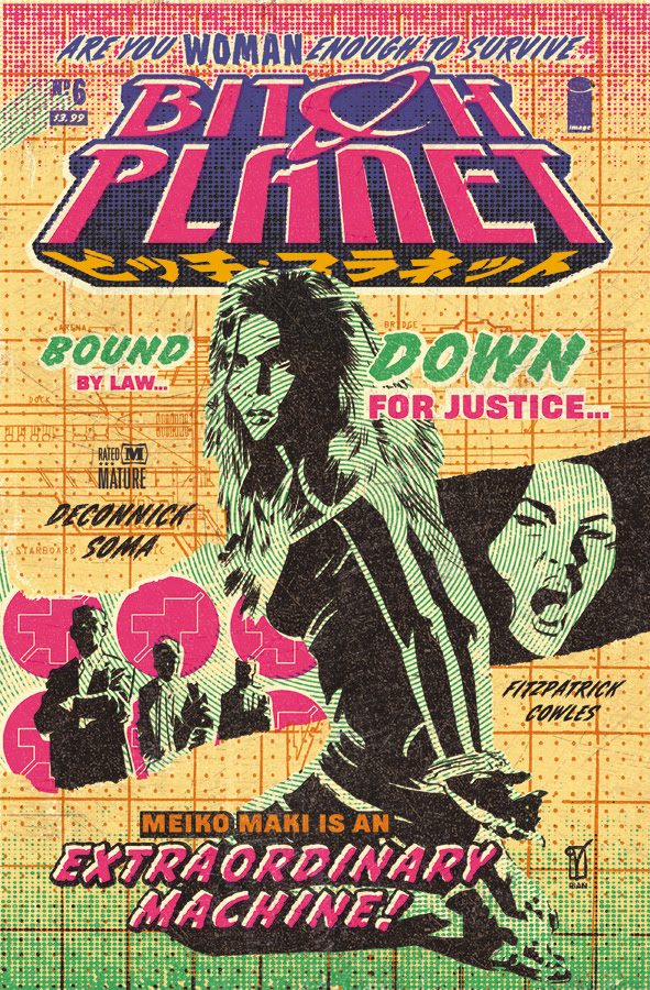 “I gotta say, this has been a dream project,” said Soma. “In this particular issue, you really GET where Meiko Maki comes from in a way that’s integral to the overall Bitch Planet title. If that doesn’t excite you, let me just say that I feel sad for you and may I suggest that you look into your pet’s eyes and hug it a lot.”