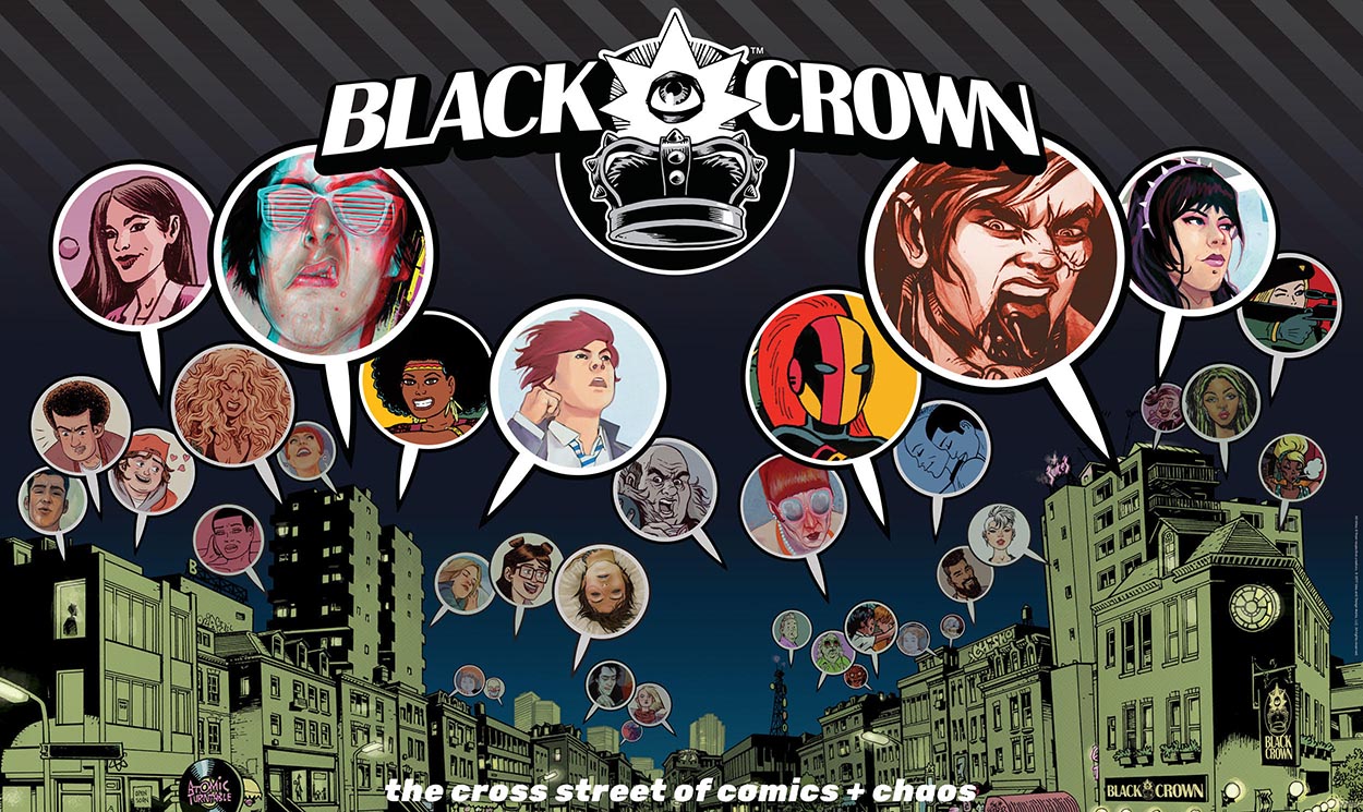 For those attending Comic-Con International in San Diego, you can swing by the IDW Publishing booth #2743 and pick up the Black Crown preview book now, a Black Crown enamel pin, or a Black Crown button.
