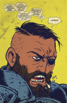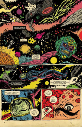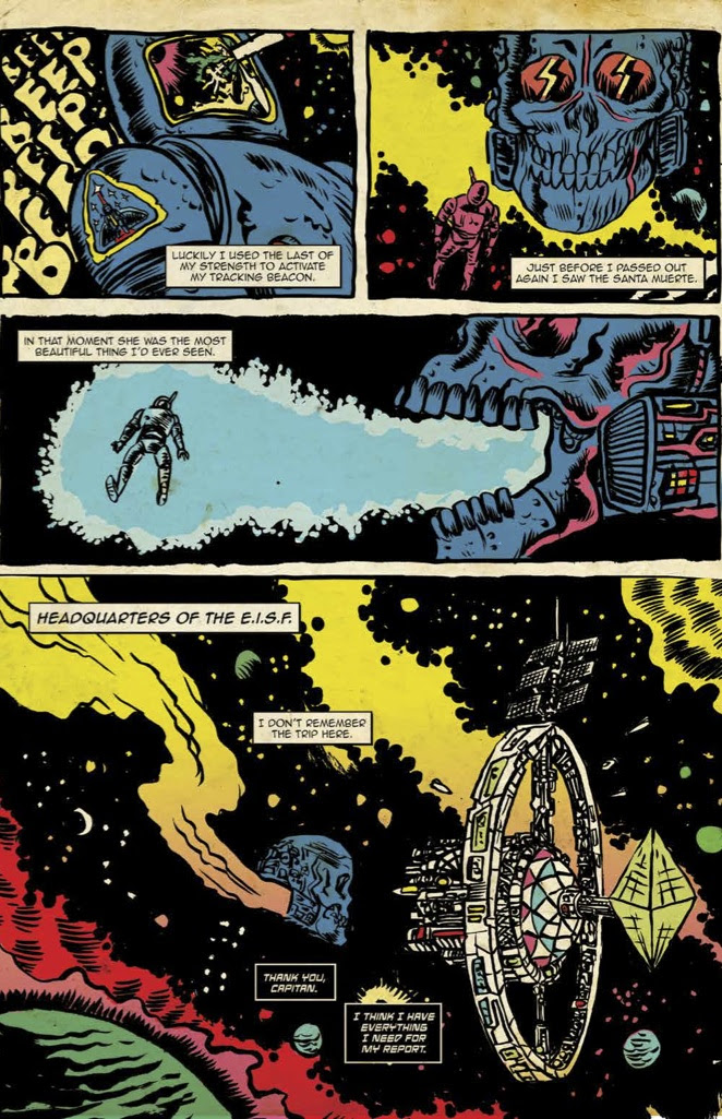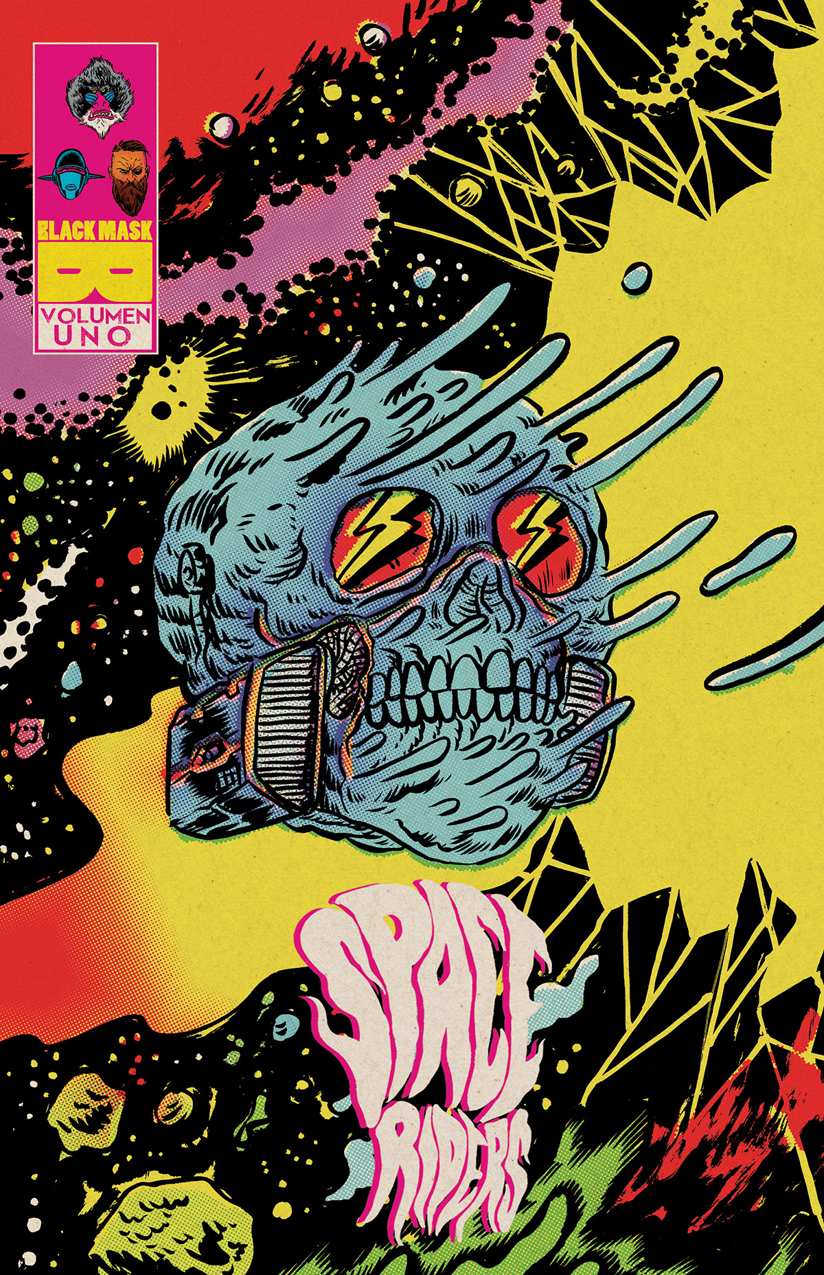 From the galactic core to the outer quadrants, one name strikes terror in the hearts of evil beings everywhere: The Space Riders! Sailing the cosmos in the Skullship Santa Muerte, Capitan Peligro and his fearless crew deal harsh justice to the scum of the galaxy while searching for the hidden truths of the universe! Collecting the four sold out issues of the psychedelic revenge tale from the minds of Alexis Ziritt and Fabian Rangel, Jr!