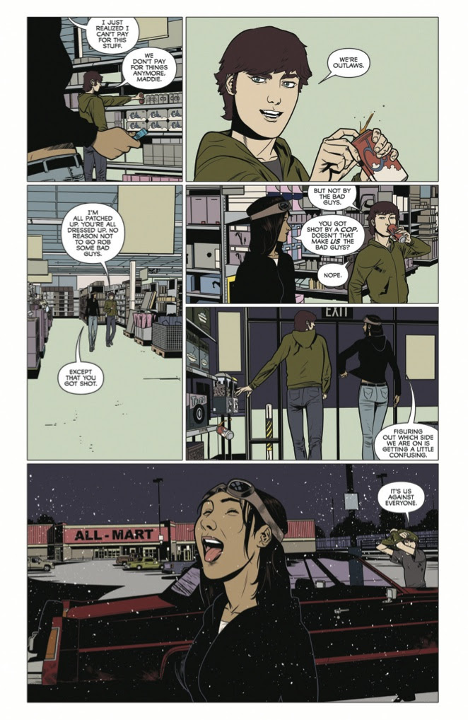 This November two of the most talked about indie comics on the year will see release as collected editions. SPACE RIDERS and WE CAN NEVER GO HOME have both sold through multiple printings, been critical darlings, and become legitimate cult hits. Now they will be in comic shops in time for the holidays. And what makes a better gift to friends and family than stories about space pirates in flying skulls on a quest for revenge or teenagers robbing and killing their way across the American heartland?