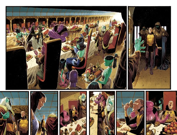 “We have more exciting new worlds, illustrated masterfully by Matteo, that alone is worth the price of admission,” he added. “And finally one of our cast members returns home to Earth to discover a shocking truth. I couldn’t be more excited about this story and the payouts loyal readers have to look forward to.”