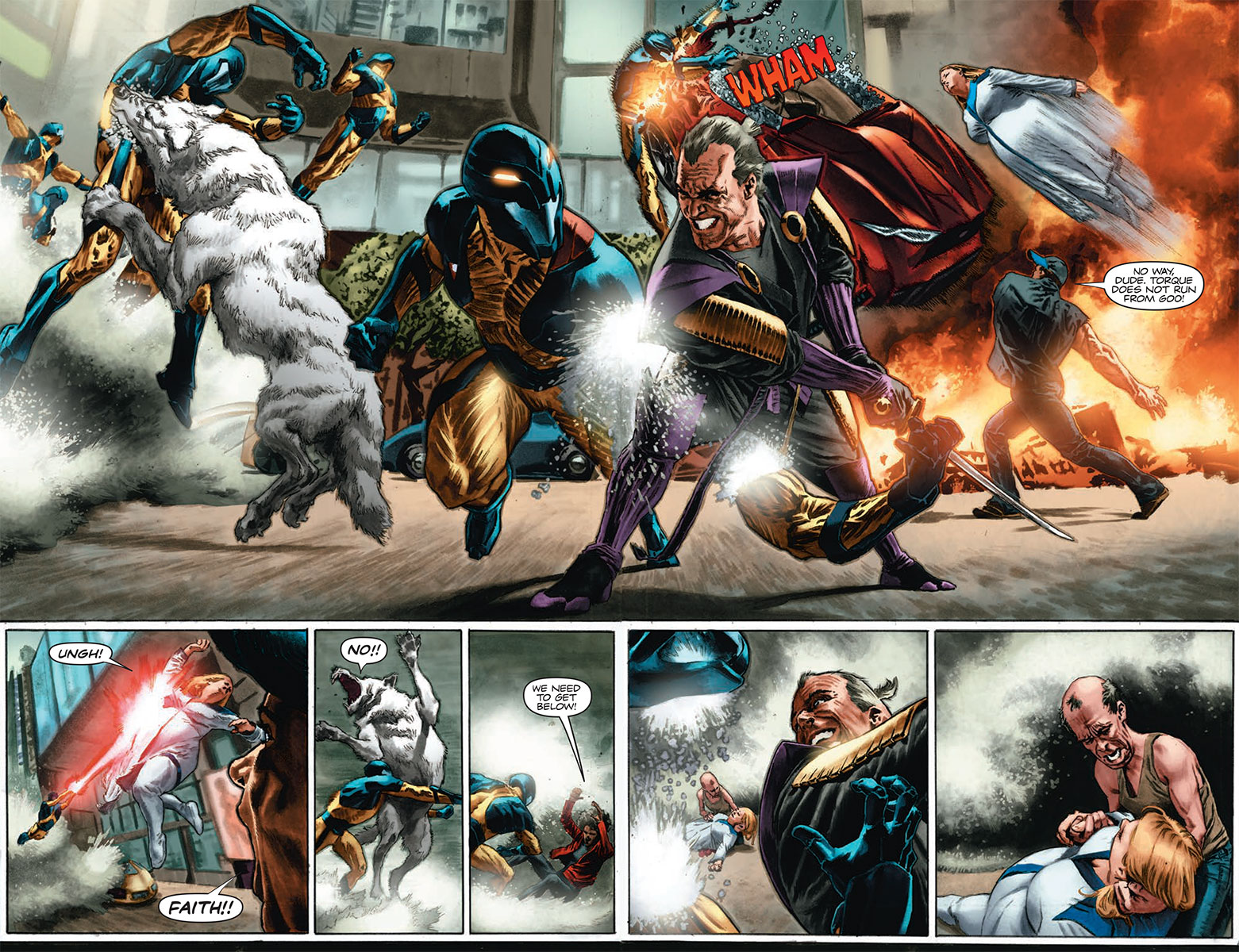 Far into a post-apocalyptic future, Los Angeles has descended into chaos…and even the remaining heroes of the Valiant Universe can’t stand against the G.A.T.E. super-tech that now dominates the wastelands. As Bloodshot and his longtime love Magic emerge from their desert refuge with a small group of survivors in tow, an unexpected acquaintance from the past returns, seeking help and forcing Bloodshot to either turn his back on his friends…or his family! But is the master assassin once called Ninjak truly an ally… or a foe lying in wait?
