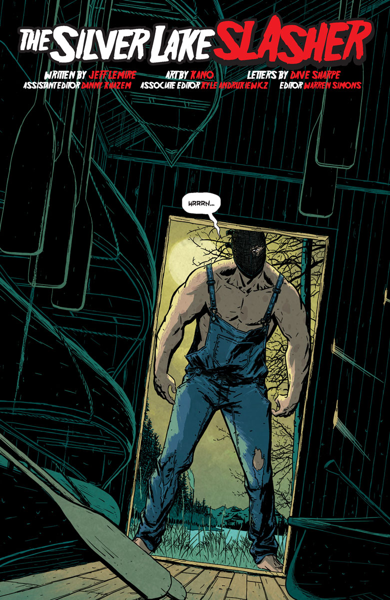 First: Terror doesn’t wait for Friday at Camp Silver Lake in an extra-sized tale of summertime mayhem from New York Times best-selling writer Jeff Lemire and Valiant superstar Kano! A masked menace has stalked this camp for years, but what happens when one unstoppable killing machine comes up against another?