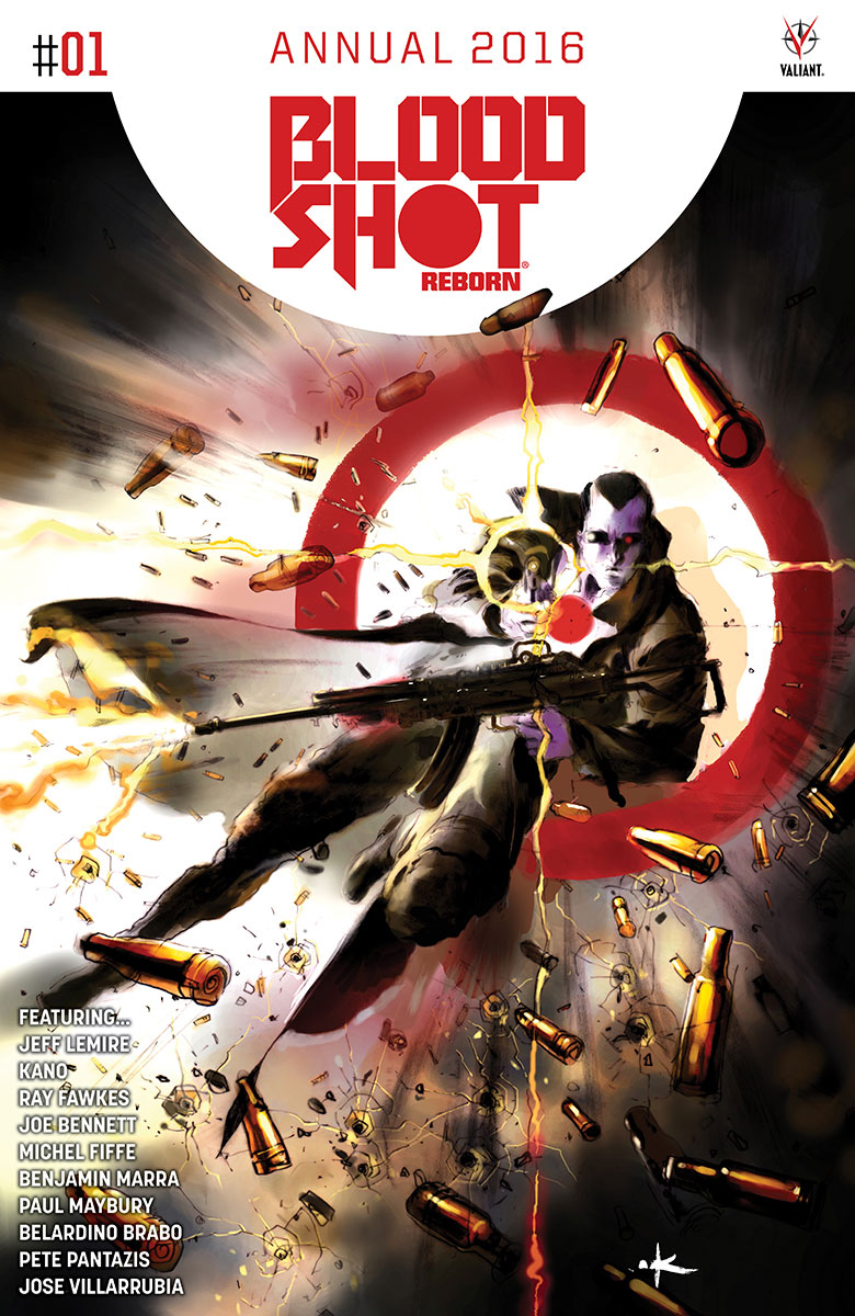 Valiant’s indestructible commando gears up for Valiant’s first-ever annual with a 64-page bloodbath touring Bloodshot’s past, present, and future!