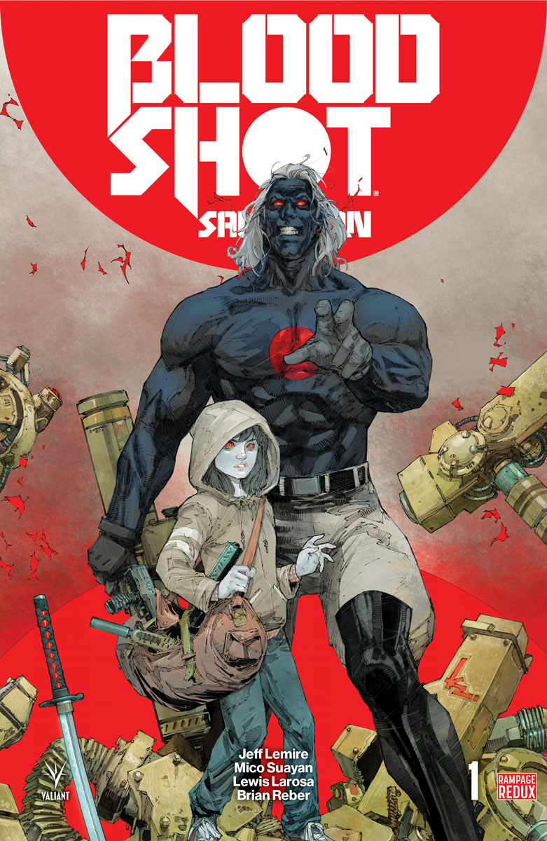ALSO: Valiant is rewarding fans who pre-order BLOODSHOT SALVATION’s furious first year with the BLOODSHOT SALVATION #1–12 PRE-ORDER EDITION BUNDLE — available only as a pre-order set! The BLOODSHOT SALVATION #1–12 PRE-ORDER EDITION BUNDLE – twelve, 40-page massively expanded editions of the complete first year of Jeff Lemire’s staggering new series – can only be ordered as a set and must be ordered with your local comic shop by the initial order date of July 27th, 2017!