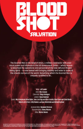 This is the story of two brothers, who were born into nothing and reaped an inheritance of anger… This is the story of Rampage – an imperfect reflection of Bloodshot’s potential, one enhanced by the very same nanite technology, but fueled by an inextinguishable furnace of hate… This is the story of the Valiant Universe’s most terrifying new villain, and a preview of the pain he has yet to inflict on an unsuspecting world…