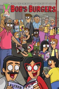 MARKETING DESCRIPTION: Dynamite proudly presents this exclusive cover by Bob’s Burgers artist Maggie Harbaugh! Gene, Louise, and Tina share a spooky story of a burger gone bad in issue #16 of the Bob’s Burgers Comic Book! Bob prepares a burger with a strange spice, but when a hungry Gene reaches for it and pricks his finger, the kids find out that it’s the burger that’s hungry – for blood. As it grows and brings great success to the restaurant, the kids have to decide whether to continue to feed the burger, or fry it.