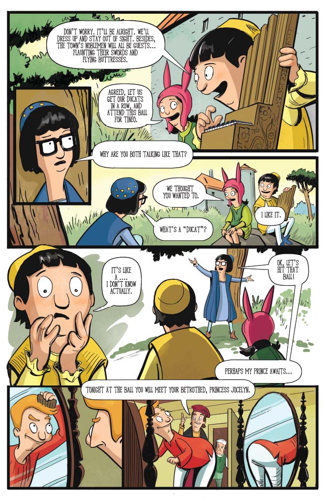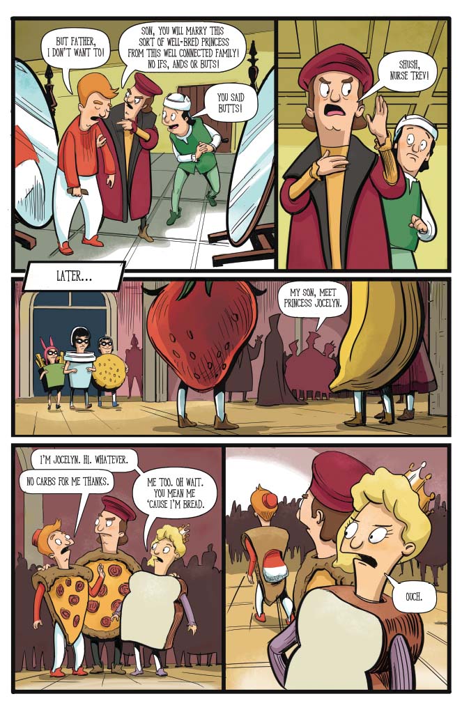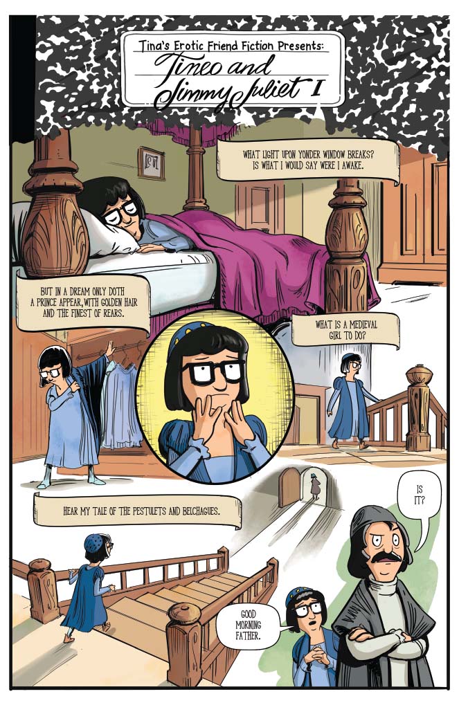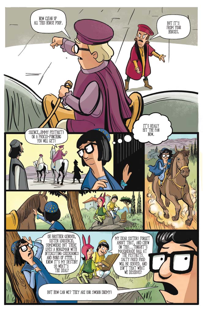 “Order up!” Bob’s Burgers Ongoing Comic Book is ready to serve you more sizzling stories in Issue #6! Louise’s suspicions lead her on a quest for pests; Captain Gene-o’s voyage continues in the clouds; and Tina tells a tale of two star-crossed lovers in Tineo & Jimmy Juliet. Bob’s Burgers is an animated sitcom that airs on Fox television with other hits such as The Simpsons and Family Guy!