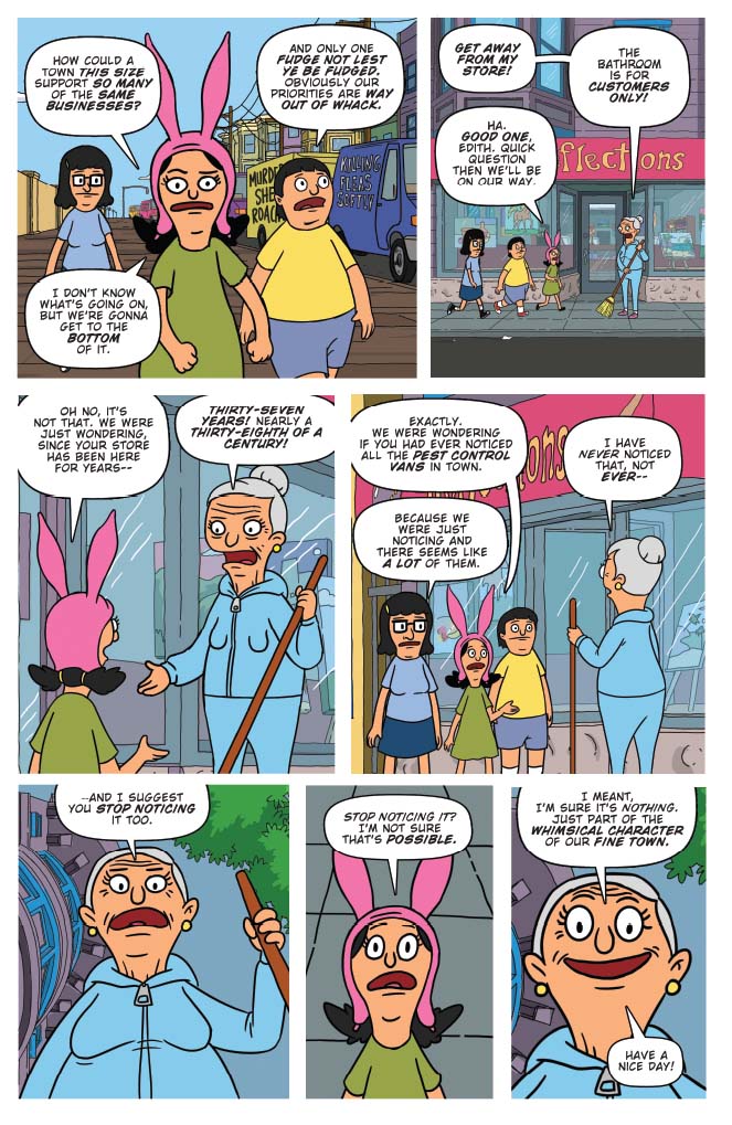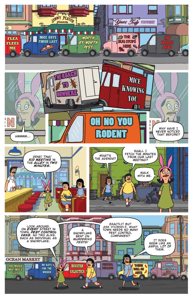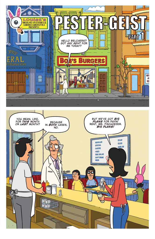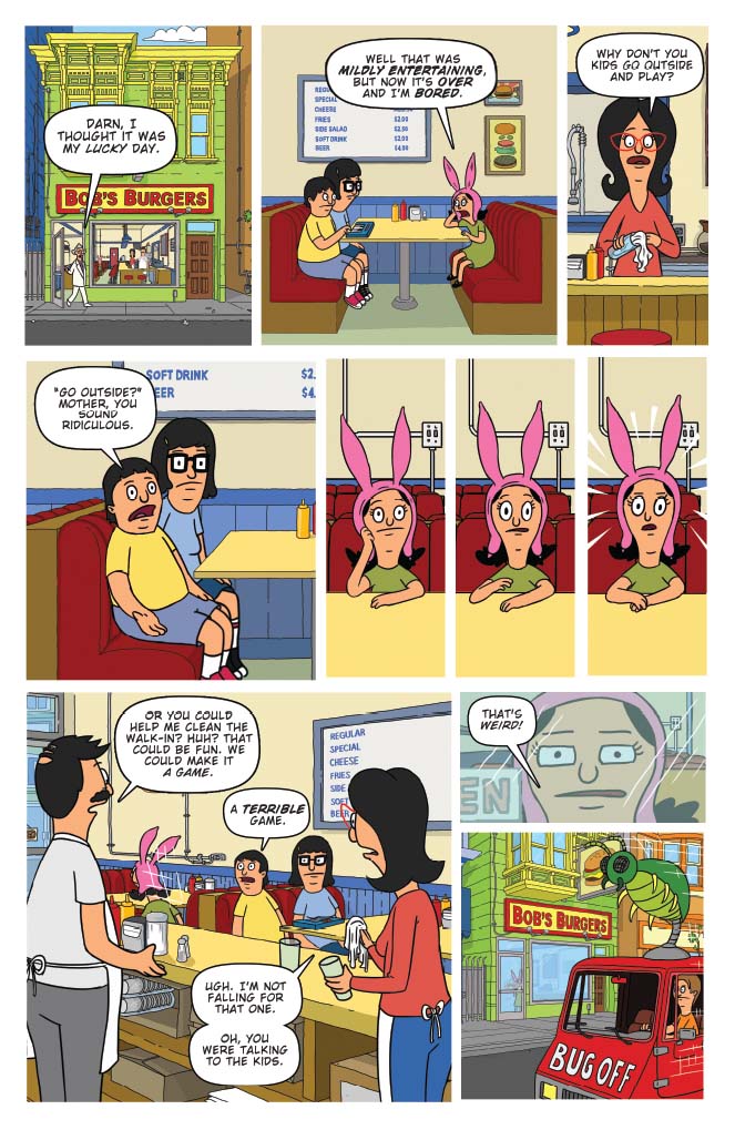 Satisfy your hunger for the red hot Bob’s Burgers with this sizzling new collection, served well done! Written and illustrated by the fine folks at the Emmy Award-winning studio Bento Box Entertainment, these Belcher Family shenanigans are guaranteed to delight fans of all ages. Thrill to Louise’s investigation into a pest control problem, Tina’s fanciful pursuit of Jimmy Pesto’s heart, and Gene’s imaginative reimagining of a maritime classic! The Belcher parents Bob and Linda also join in on the fun, alongside dozens of your favorite cast members. Bon appetite!