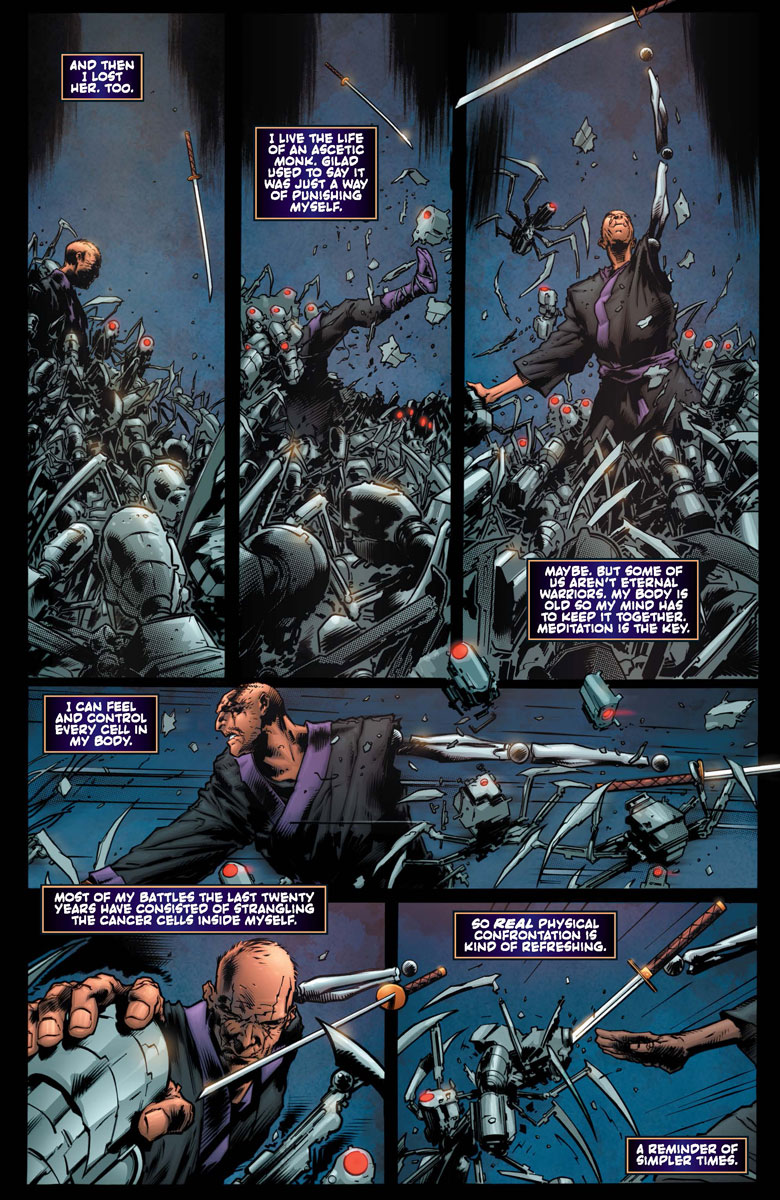 In the ruins of his mansion, Colin King hunkers down as the last living member of Unity after the Third Armor Hunt – or so he thinks. A visit from an old friend and a peace offering present the chance for Ninjak to break the cycle of death and escape the horrible fate foretold in the Book of the Geomancer. Will he betray his dead friends or will THE FALL OF NINJAK come to pass and give rise to a very familiar future…?