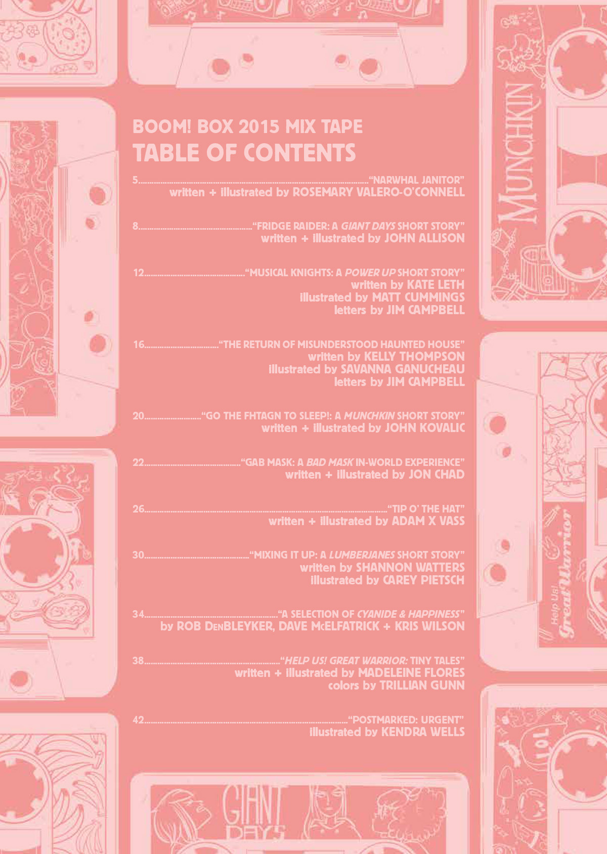 Writers: John Allison, Jon Chad, Rob DenBleyker, Madeleine Flores, John Kovalic, Kate Leth, Dave McElfatrick, Rosemary Valero-O’Connell, Adam X Vass, Shannon Watters, and Kris Wilson