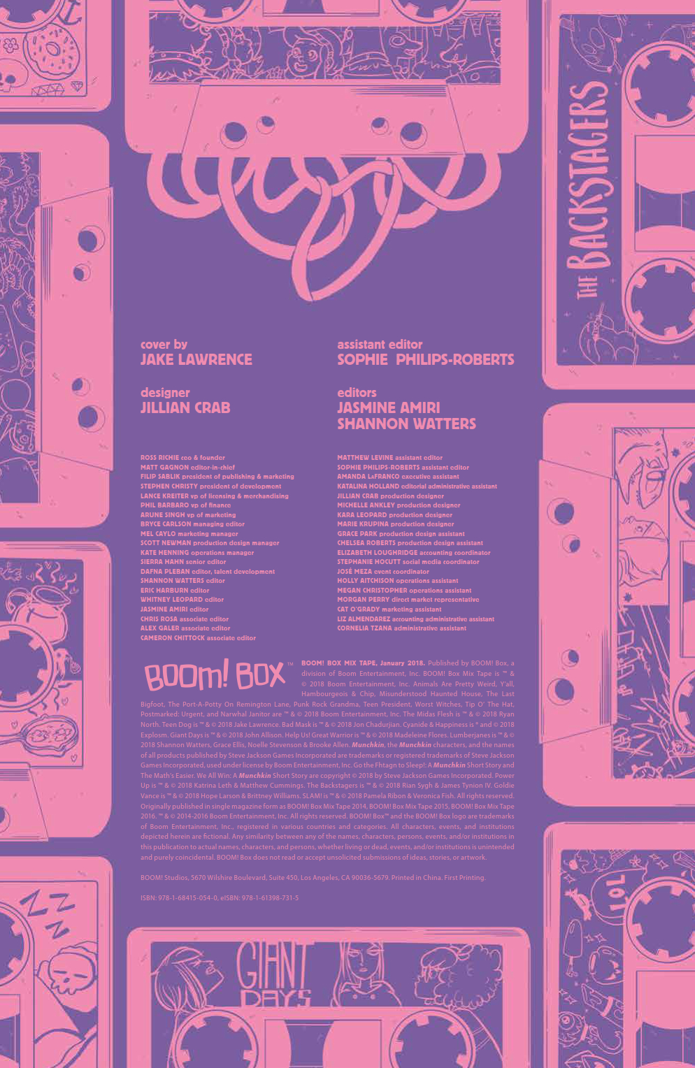 Synopsis: The annual BOOM! Box Mix Tape is an eclectic collection of stories featuring beloved characters from established BOOM! Box series as well as original stories showcasing up-and-coming creators and brand-new content. With original stories featuring Lumberjanes, Giant Days, Cyanide & Happiness, Goldie Vance, The Backstagers, and many more! Collects the BOOM! Box Mix Tape specials from 2014, 2015, and 2016.