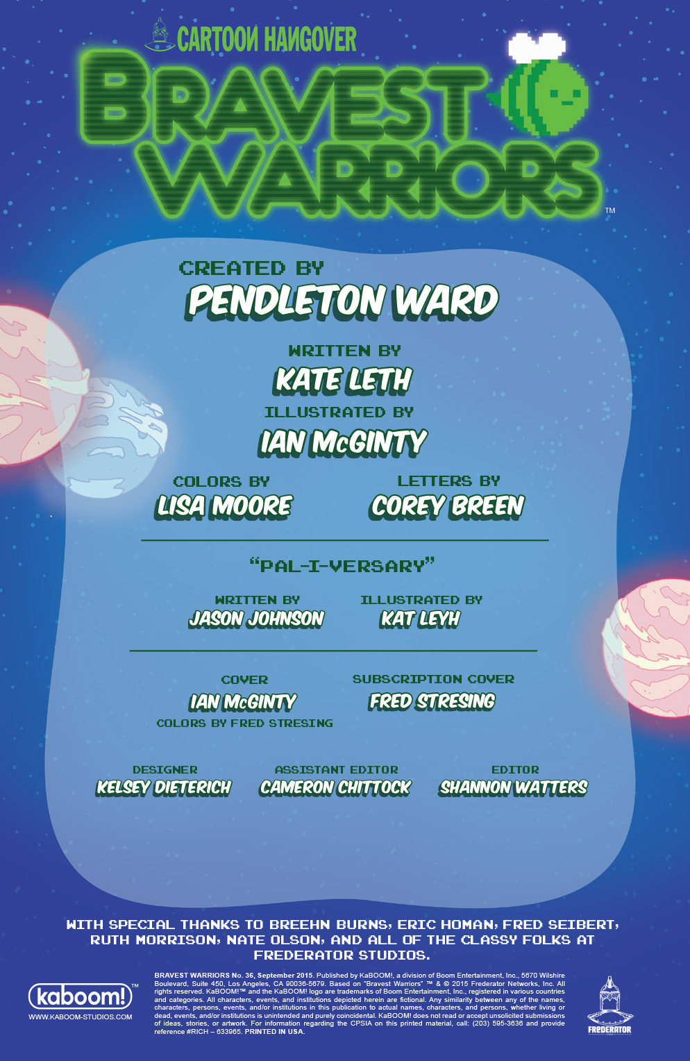 Final issue! The Bravest Warriors face Bugcat one last time in the darkest depths of the galaxy with entire planets at stake! Featuring a back-up story by Jason Johnson, one of the show-runners behind Bravest Warriors.