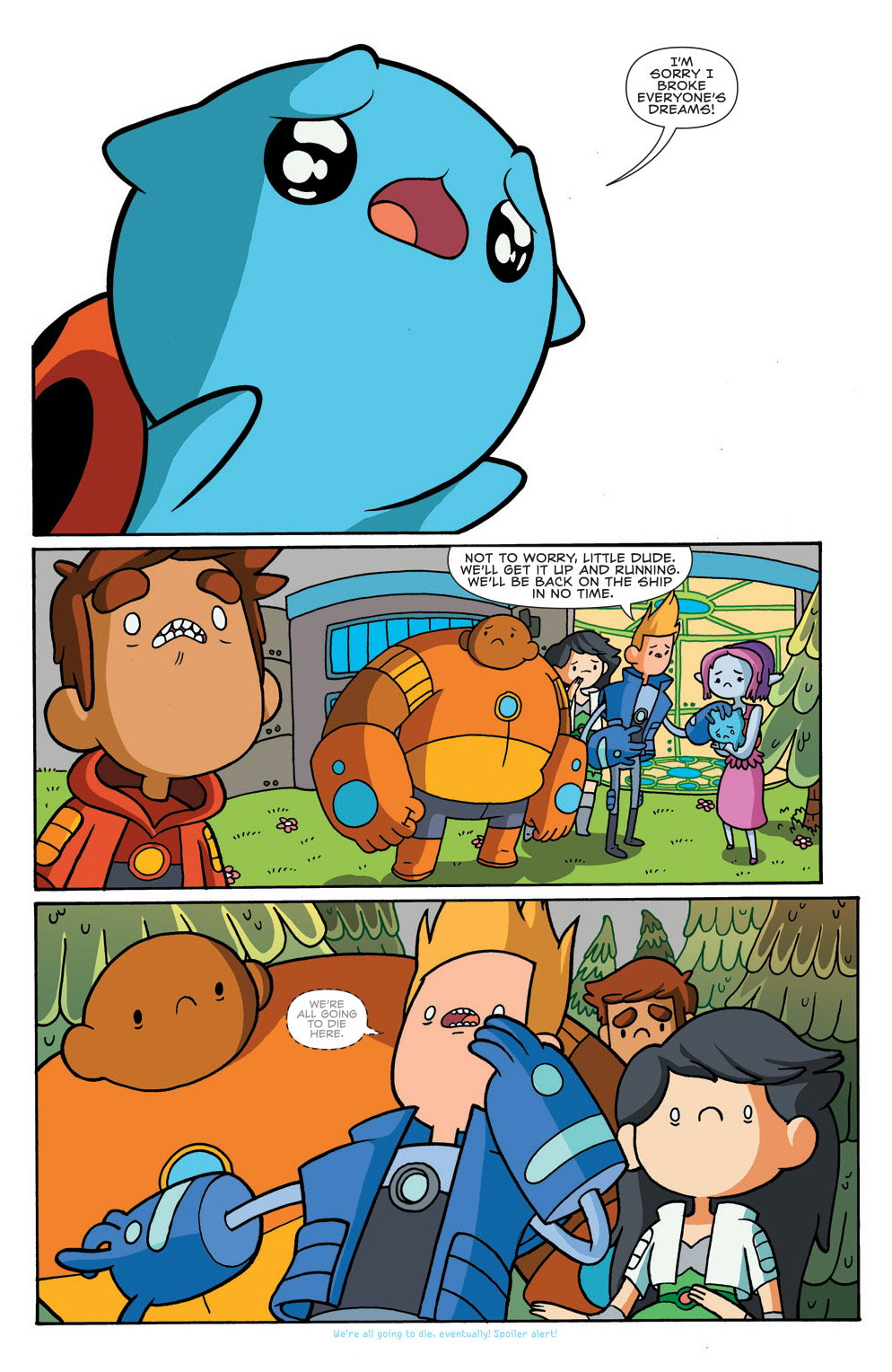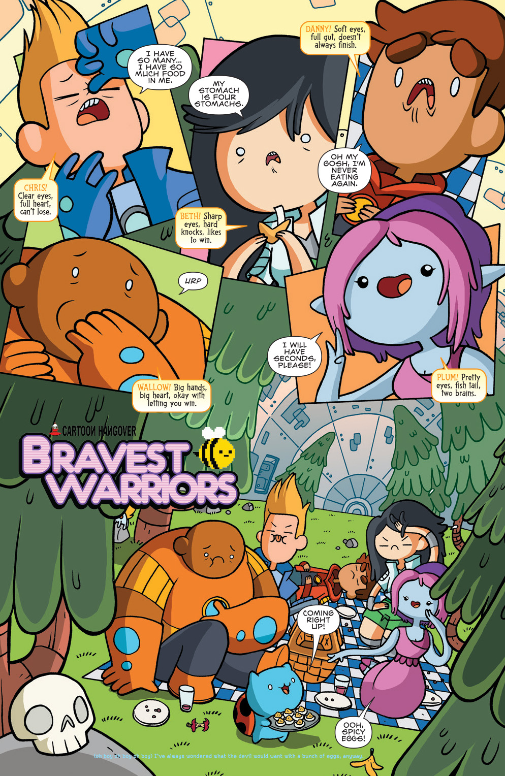 The Bravest Warriors decide to take time off from saving the universe for some team bonding over a lovely picnic…what could go wrong? If their teleporter locks them out and traps them on the planet they’re visiting? A whole lot! When Chris is captured by the bad guys and Danny falls victim to the evils of RoboChris, it’s up to Beth, Plum, and Wallow to save their friends in butt-kicking, Bravest Warriors fashion. Collects issues #21-24.