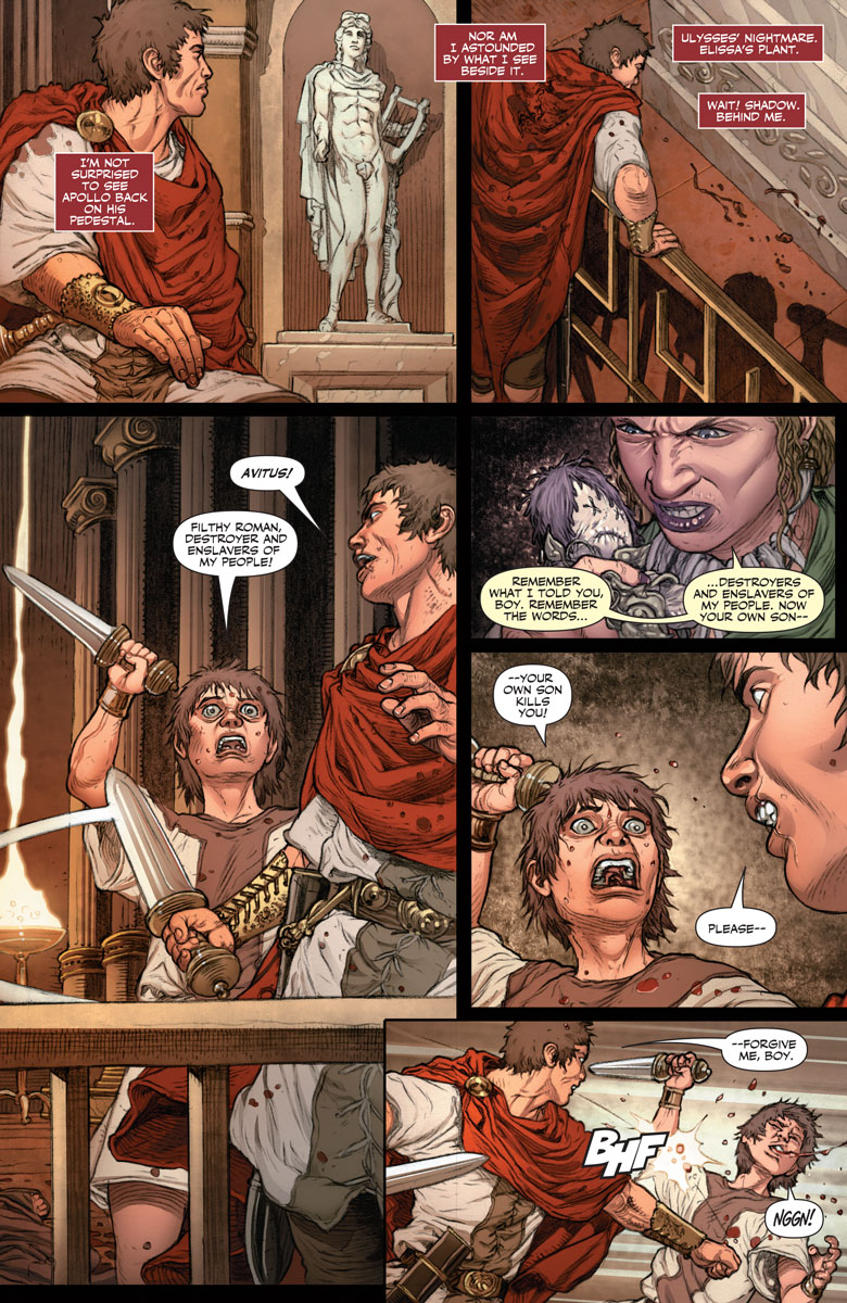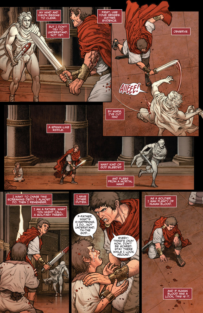 The horrifying truth behind Rome’s grisly string of murders has finally come to light… but will Antonius Axia and his mysterious new partner – the gladiator Achillia – be able to stomach it? It’s a race against the clock to stop a serial killer – who may very well be the vengeful spirit of Apollo himself — before it strikes again! But should Antonius and Achillia fail in their mission, they’ll condemn not only Rome…but those Antonius holds dear as well.