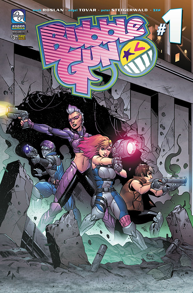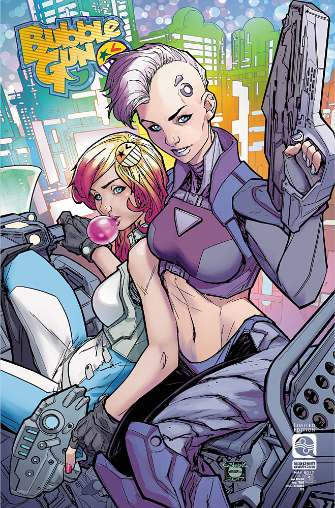 Creator and writer Mark Roslan (Broken Pieces) is joined by penciler Angel Tovar () and colorist Erick Arciniega () on what’s sure to become one of comics’ biggest sci-fi, action adventure series of the summer! Strap yourselves in because BUBBLEGUN is gonna take you on a wild ride!