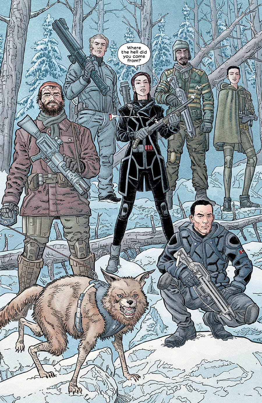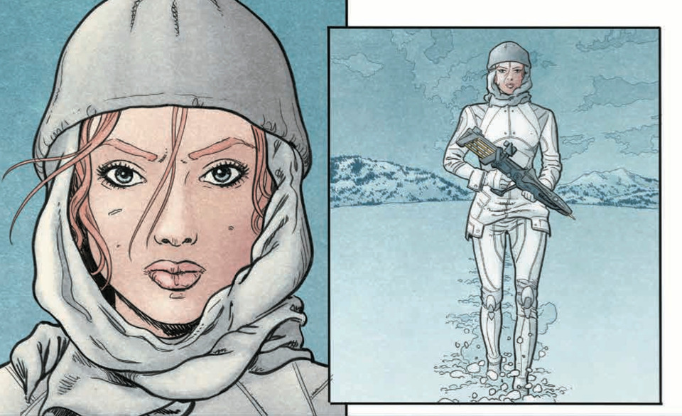 Matt Hollingsworth does our country right. not too much red and white but I understand that the co-creators most likely didn’t want to flaunt our flag too much to our friends down south. Amber’s white uniform is camouflage for the lonely life she’s led as well as a symbol of heroism and hope. The gunmetal grey is cold, cruel, and impersonal.