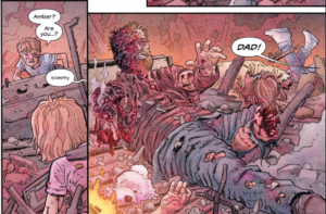 The bonding is interrupted by a colossal war drone know as a Guerilla. It approached them in silent mode. The FF (not that group) manage to incapacitate the ATV. Man 7, machine 0. They crack it open to inspect it for parts. Surprise, mother****er!! It was manned! A soldier opens fire hitting Booth right in the jugular. He dies immediately. The man claims to have been following orders and utters surrender. The group is enraged. Amber’s loyalty is put to the test. She has to be the one to pull the trigger and take him out. If not, she’s either a sympathiser or a spy. BLAM. End of discussion. Amber has just gained admission.