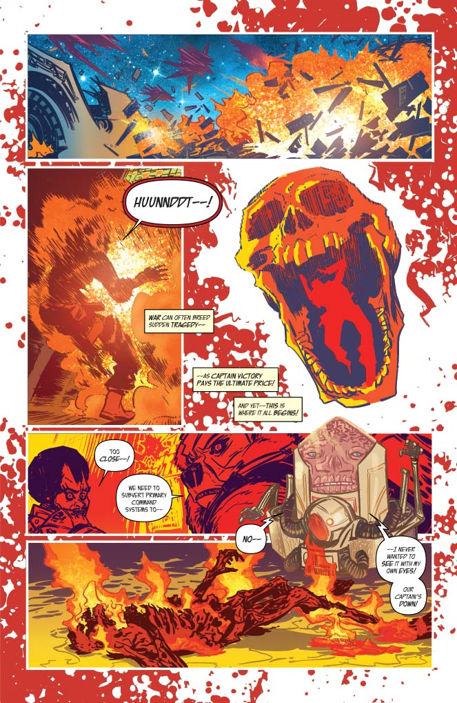 The valiant Captain Victory falls in battle… but death is only the beginning! His superiors long ago enacted a contingency plan: maintain clone bodies, that — with a memory download — can be sent into space to die again and again. Only this time, two copies were created, their memory downloads incomplete and bodies ejected into far-flung time and space. Can a teenage, amnesiac Victory survive the dangers of 1970s New York City? Can a scarred, hulking Victory survive a hazardous alien landscape millions of light-years away? Born from the fertile imagination of comic book legend Jack Kirby, Captain Victory bounds into cosmic adventure anew courtesy of writer Joe Casey (Sex, Uncanny X-Men) and artist Nathan Fox (Blue Estate, Haunt)!