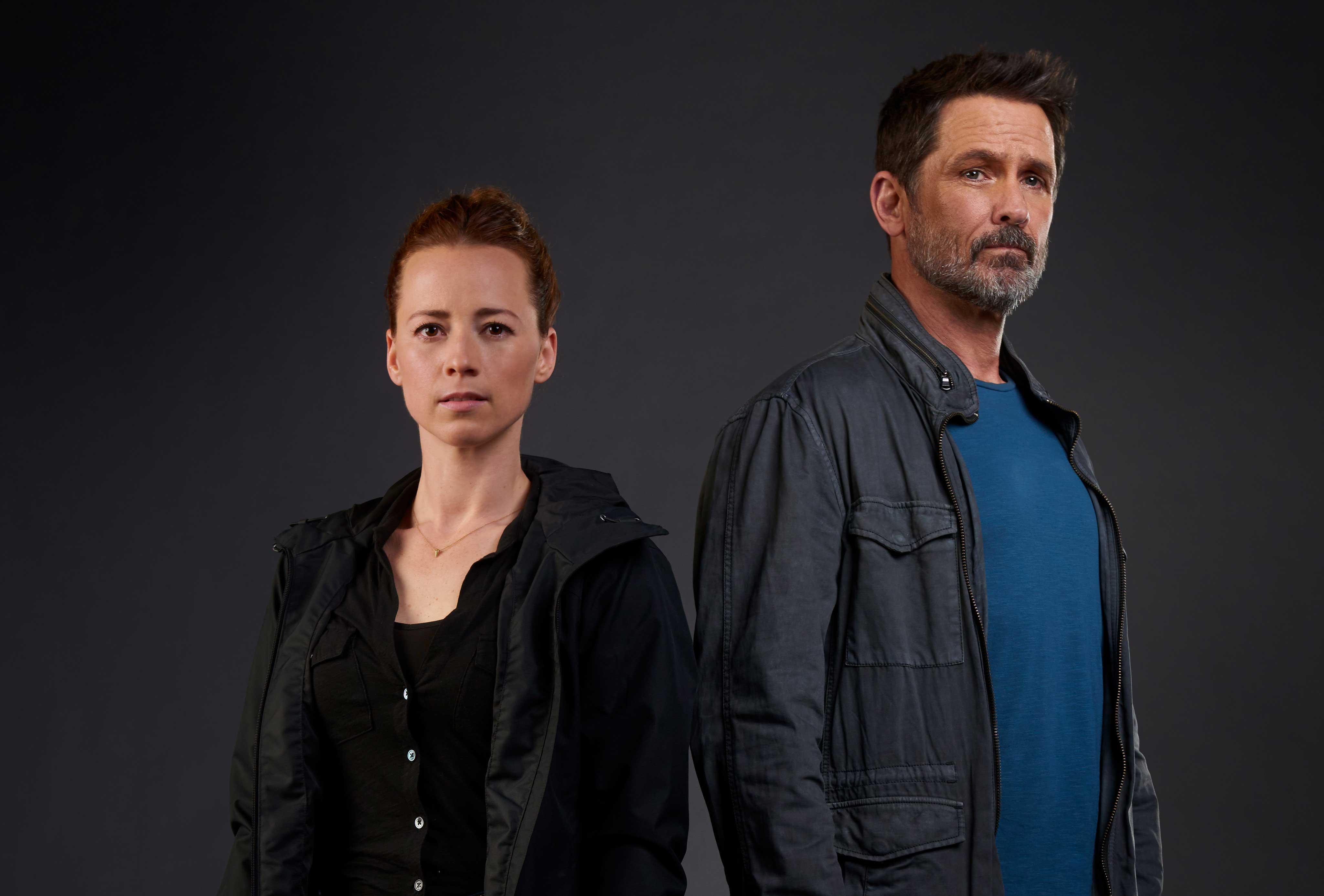 Karine Vanasse as Det. Lise Delorme and Billy Campbell as John Cardinal/Photo Credit: CTV, eOne Entertainment