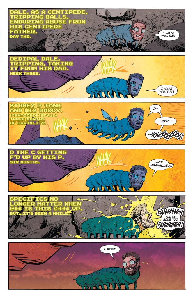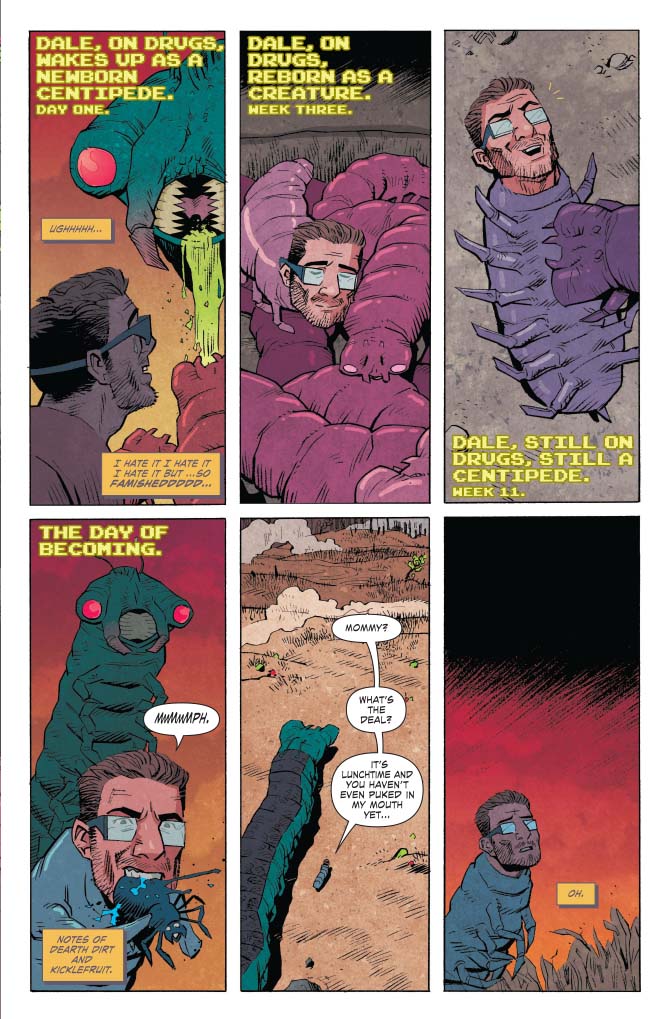 Dale’s life has been nothing even close to normal since a flying monster descended on his planet and destroyed it, but things get even weirder as he discovers the Centipede’s history, in what can only be described as a psychedelic trip down the creature’s memory lane.