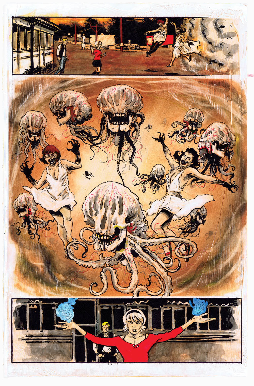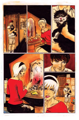 “WITCH-WAR” Part Two, “Burnt Offerings”: Edward Spellman, trapped in Harvey’s body, has been reunited with Sabrina, and is ready to enact his dark agenda!