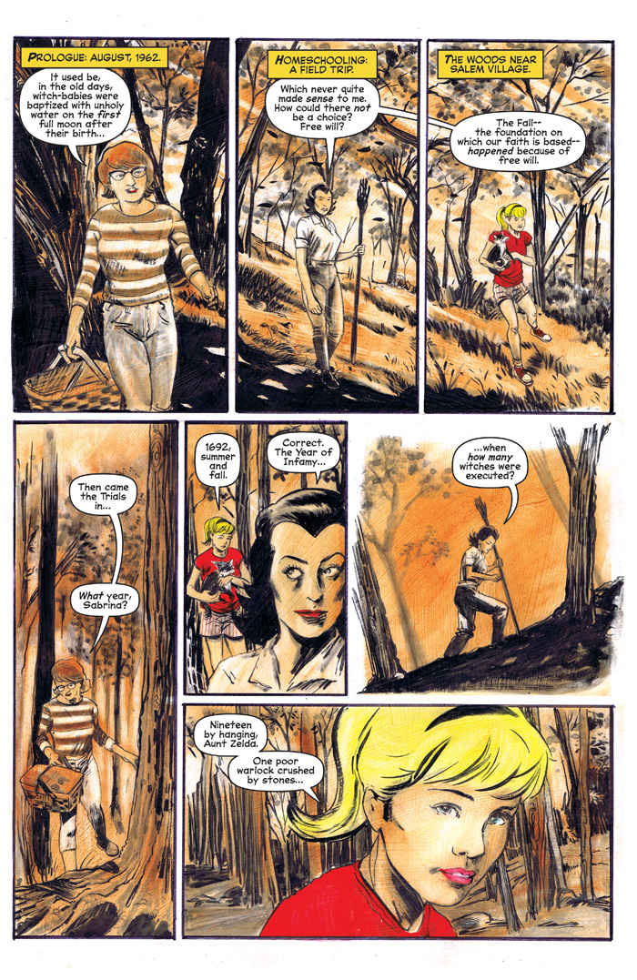 On the eve of her sixteenth birthday, the young sorceress Sabrina Spellman finds herself at a crossroads, having to choose between an unearthly destiny and her mortal boyfriend, Harvey. But a foe from her family’s past has arrived in Greendale, Madam Satan, and she has her own deadly agenda. Archie Comics’ latest horror sensation starts here! Compiles the first five issues of the ongoing comic book series Chilling Adventures of Sabrina. For TEEN+ readers.