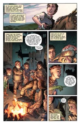 Arya continues to travel north with Yoren and the mysterious Jaqen H’ghar. Meanwhile, Theon returns to his home, the ancestral seat of the Greyjoys upon the isle of Pyke—and with him, he carries a message from Robb Stark, one that contains a proposal that could change the tide of the war…