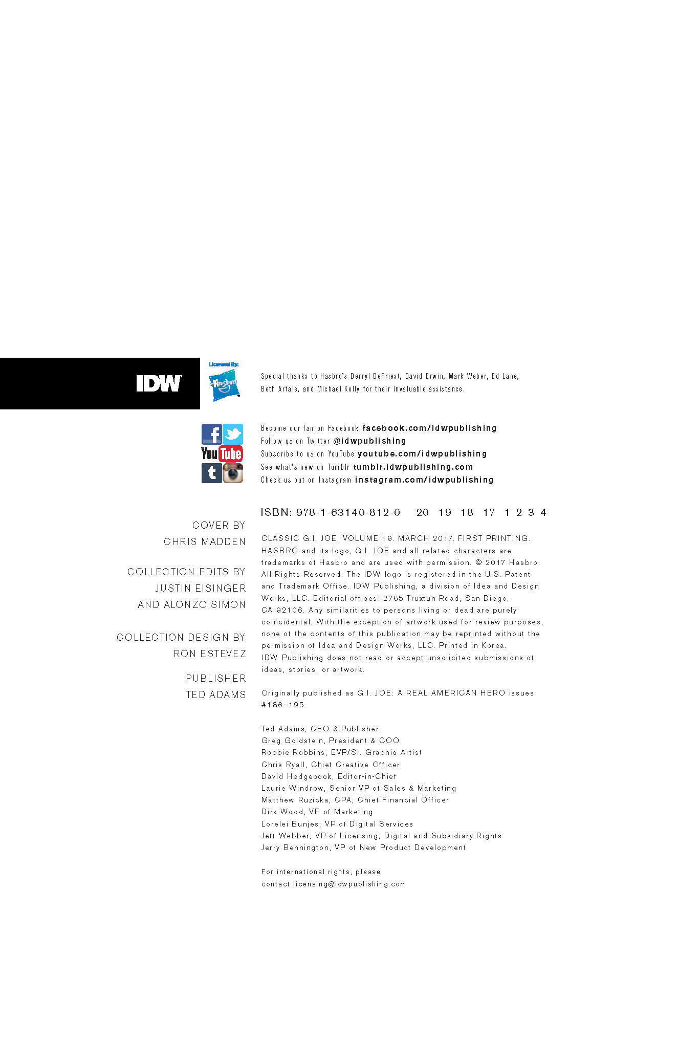 Larry Hama picks up the original storyline from G.I. JOE: A Real American Hero. In Benzheen, Darklon and Colonel Faroud want to test out their newly acquired nuclear device. Stalker leads a team to rescue hostages captured by pirates. And Jinx and Pale Peony are on the trail of some new intelligence that could have far reaching implications. Collects issues #186–195.