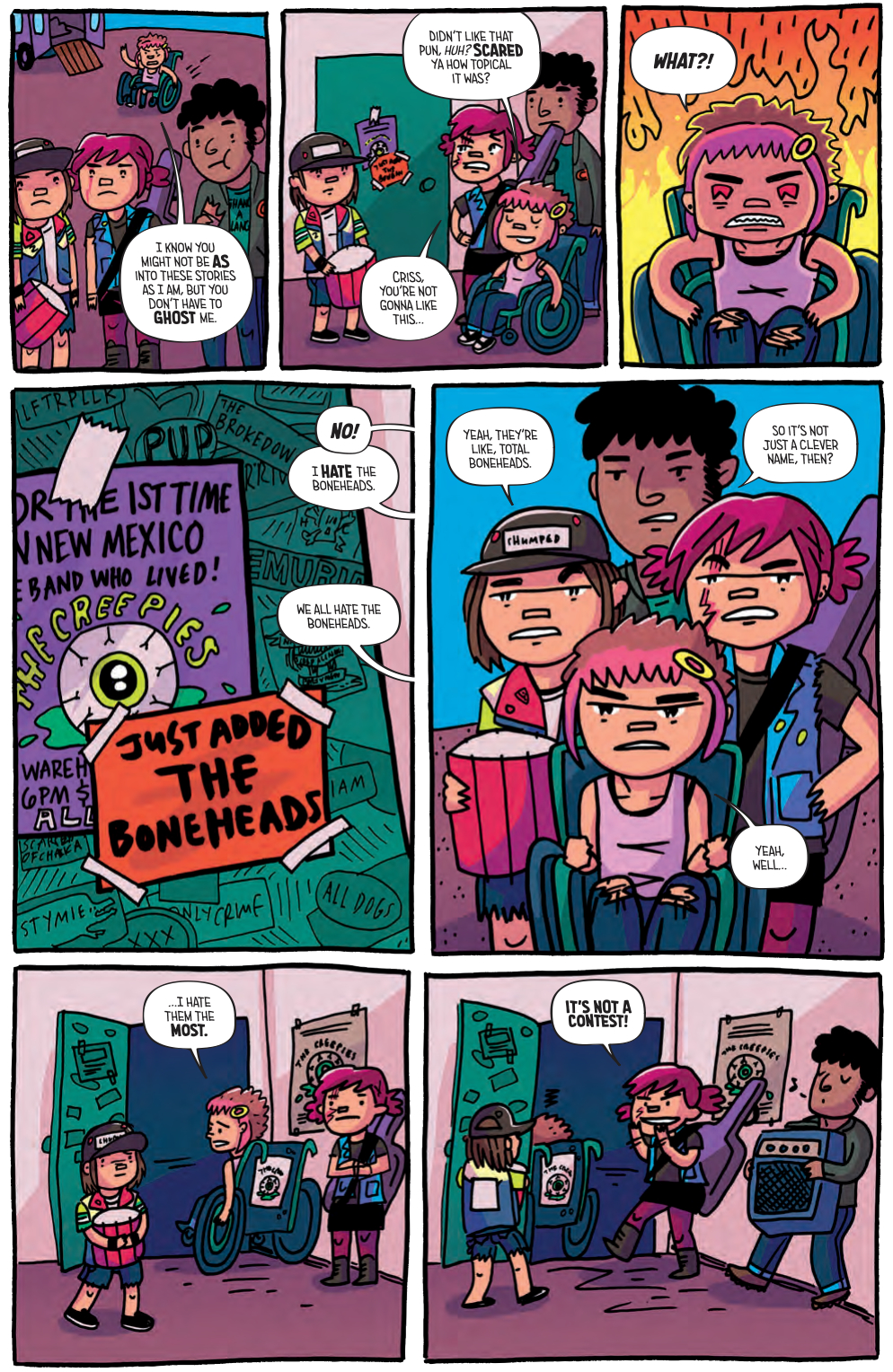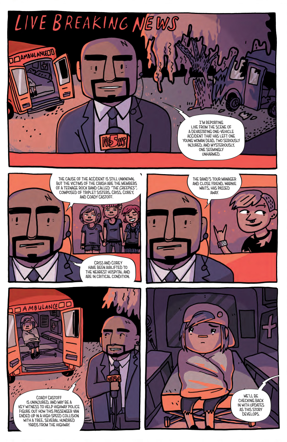 Synopsis: Sisters Coady, Corey, and Criss are The Creepies, a trio of punk rockers determined to play every gig in Pinmageddon. They’re heading out on their first tour since a freak accident left Coady eerily unscathed…and, well, technically dead. It may prove a little difficult to be the greatest band that ever lived when your drummer is a ghost! Collects the complete limited series.