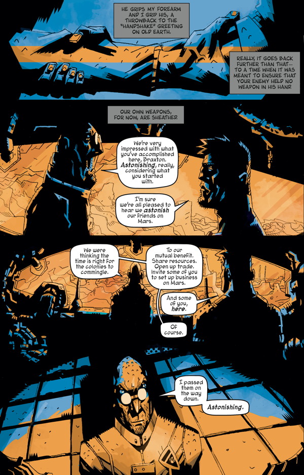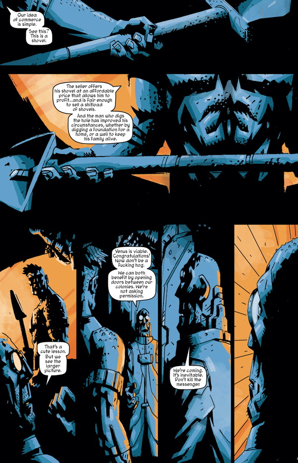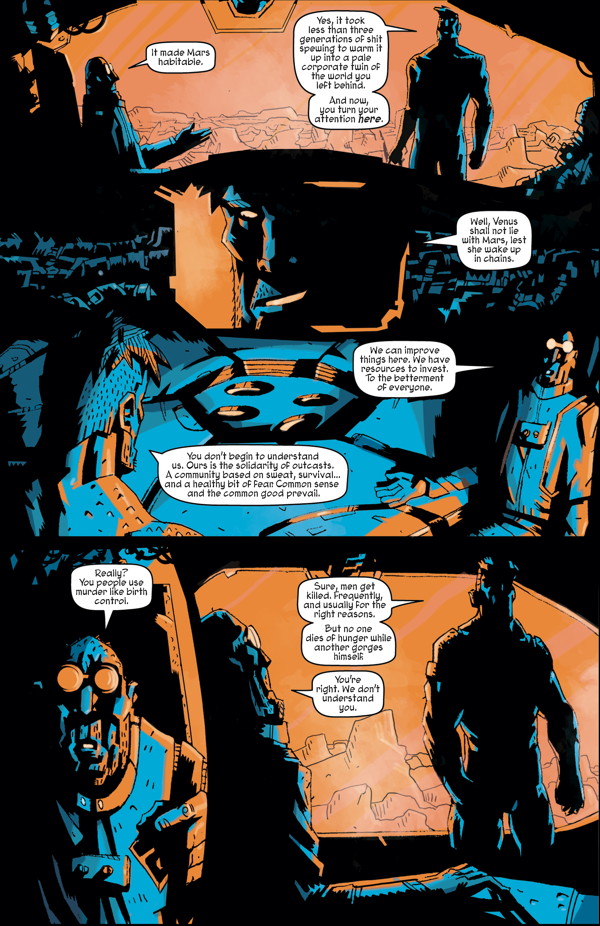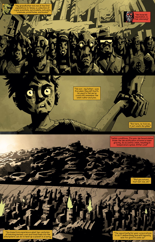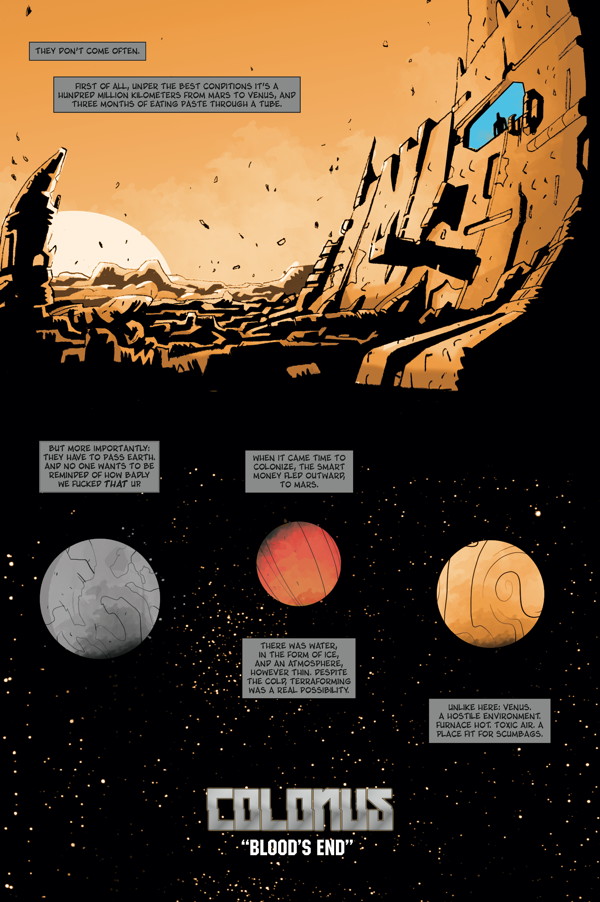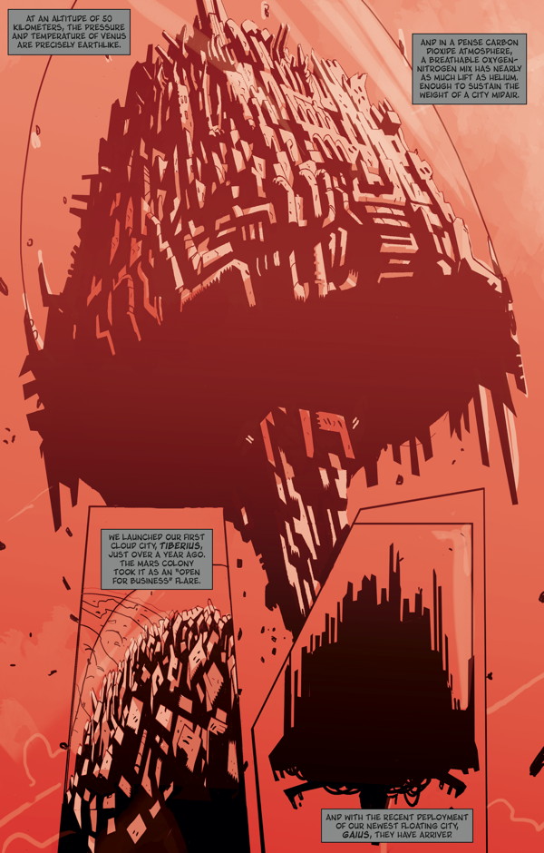 The future: a dying Earth has been abandoned, the poor and weak left behind. While Earth’s elite survivors colonized Mars, its outcasts—the miscreants, criminals, fringe-dwellers, crackpot scientists, and sociopaths—fled inward, to Venus (“a place fit for scumbags”). Three generations later, the denizens of Venus, strengthened by hardship forged in brutality and hellish conditions, are thriving. Attracted by the successful launch of Venus’s second floating “cloud city,” the corporate fascists of the Mars Council launch an insurgency for control of Venus . . . but Braxton, the third generation leader of this colony of outlaws, will fight to save his family dynasty.