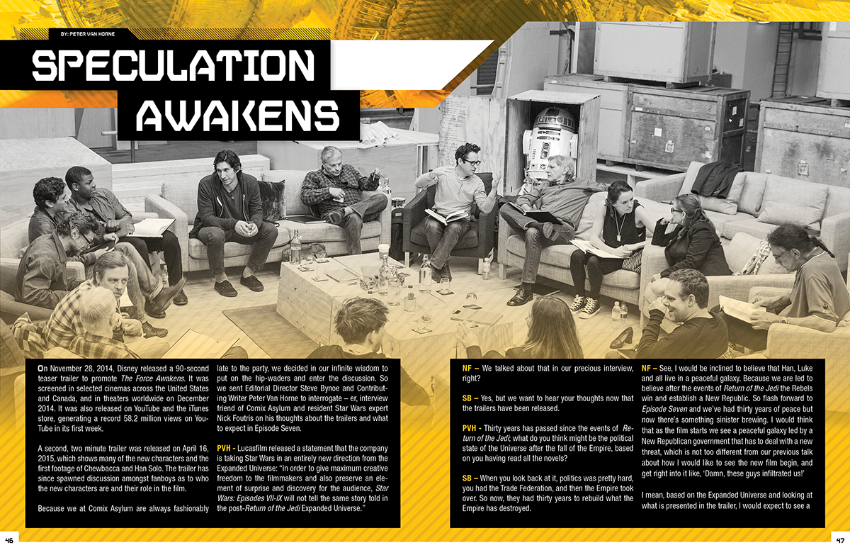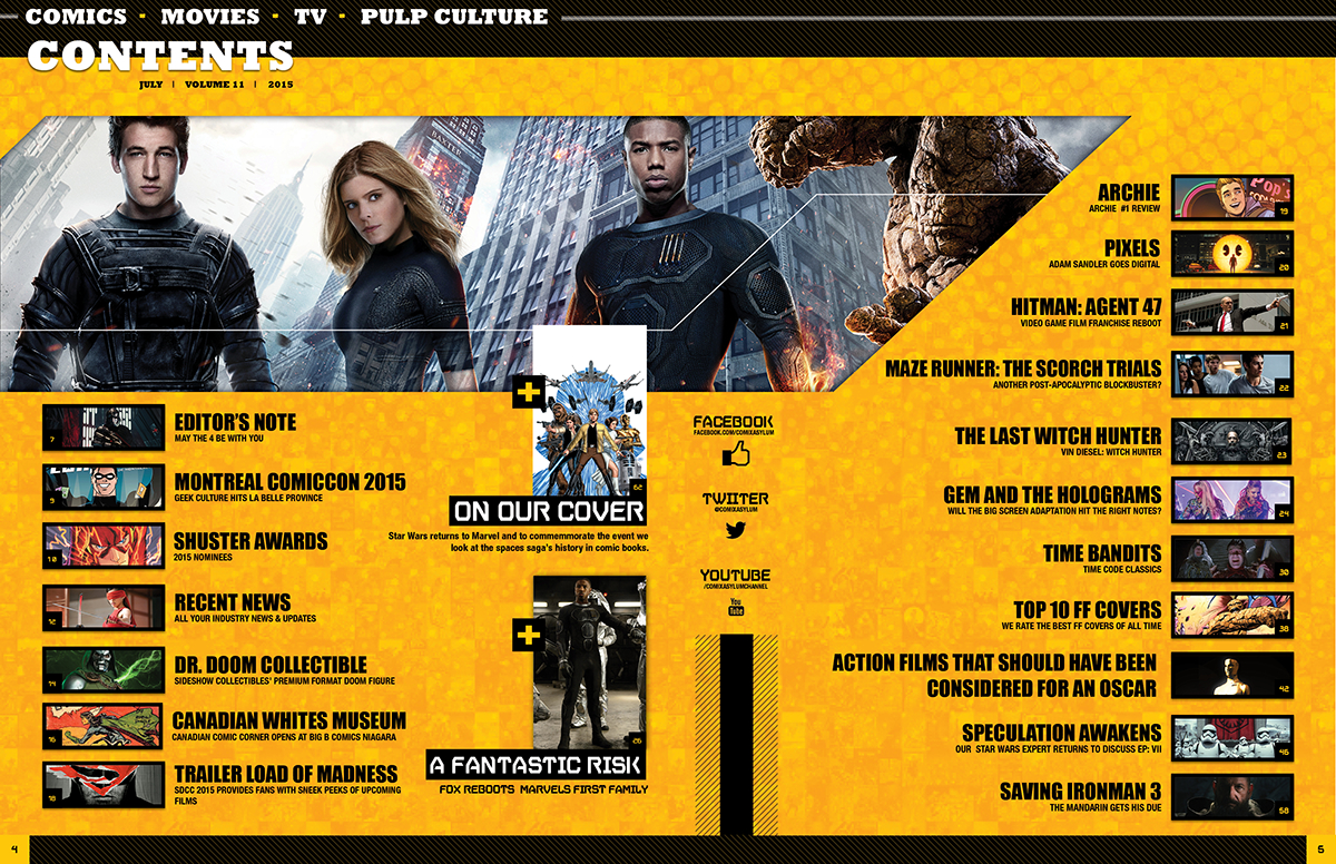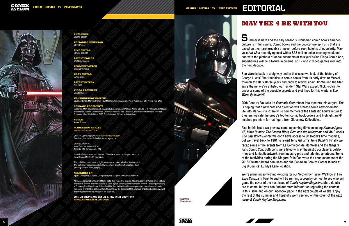 In this issue of Comix Asylum Magazine we analyze Star Wars’ return to Marvel, Star Wars: Episode VII – The Force Awakens, the Fantastic Four reboot and recap Le Comiccon de Montréal. Also featured are the Shuster Awards nominees, actions films that should have won an Oscar, The Canadian Comic Book Corner in Niagara Falls and previews of Hitman: Agent 47 and Maze Runner: The Scorch Trials. Get all of this and more in the latest issue of Comix Asylum Magazine now available for download.