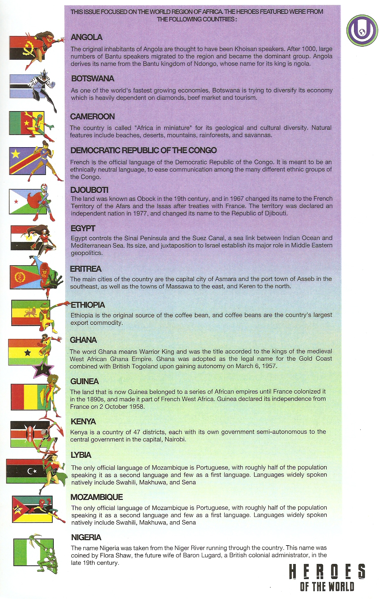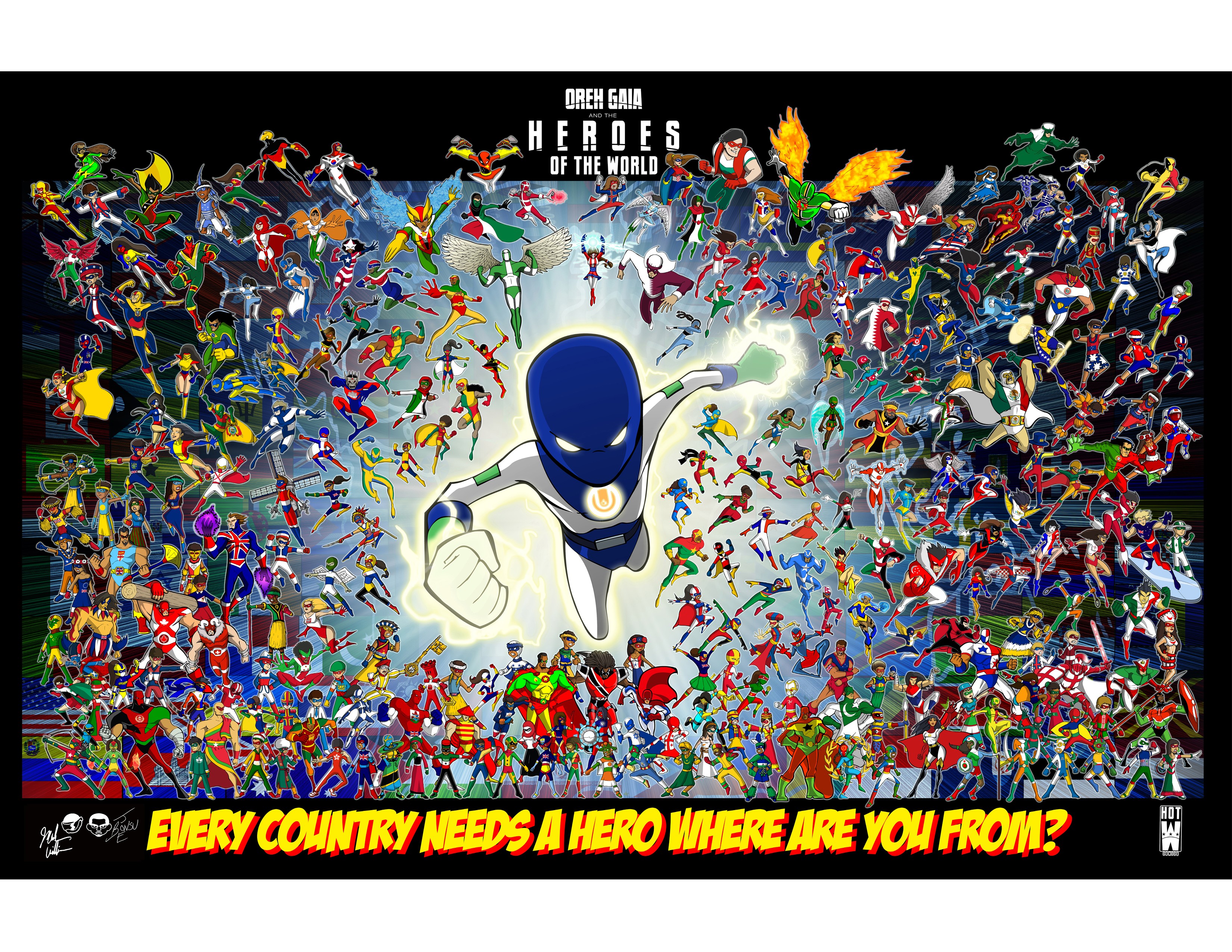 There are 200 countries presently on planet Earth. Can you list all the heroes you’ve created??