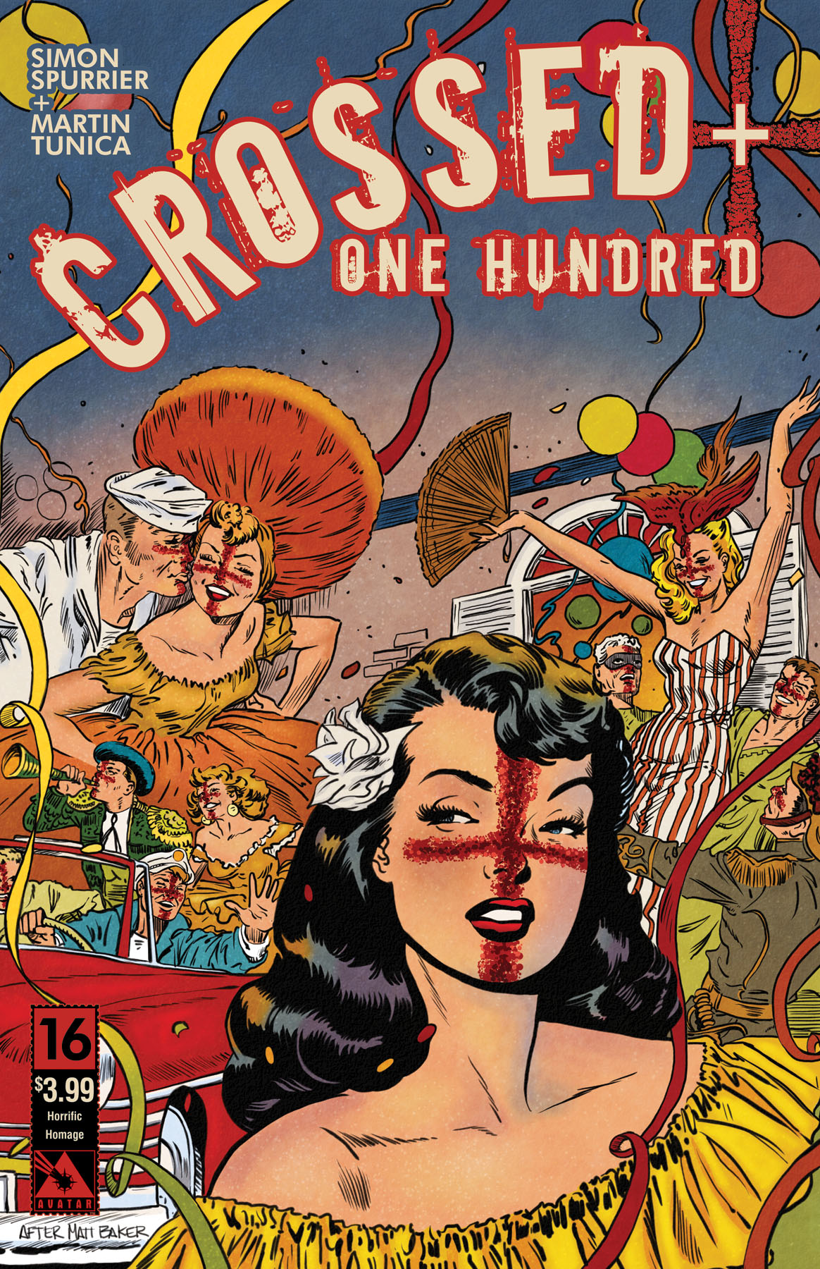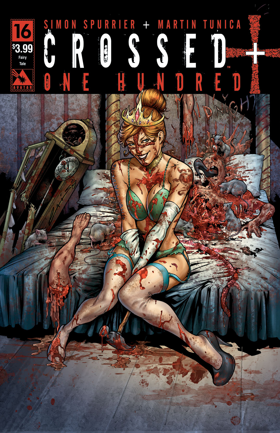Crossed100-16FairyTaleA lot can happen in 5 years. Simon Spurrier continues the story of Future Taylor as with a leap into the future and the survivors full-engaged in the battle to reclaim their humanity.   Take the world of the Crossed, which nearly wiped out all of humanity, and allow Alan Moore to decipher how civilization will evolve from there. The end result is Crossed +100, a wholly original take on the future of the Crossed world that is so immersive it has its own language and multiple cultures developed within. Available with a Regular, Crossed Wire and American History X cover by Gabriel Andrade, Fairy Tale cover by Emilio Laiso, Wishful Fiction by Daniel Gete and Horrific Homage by Michael DiPascale.