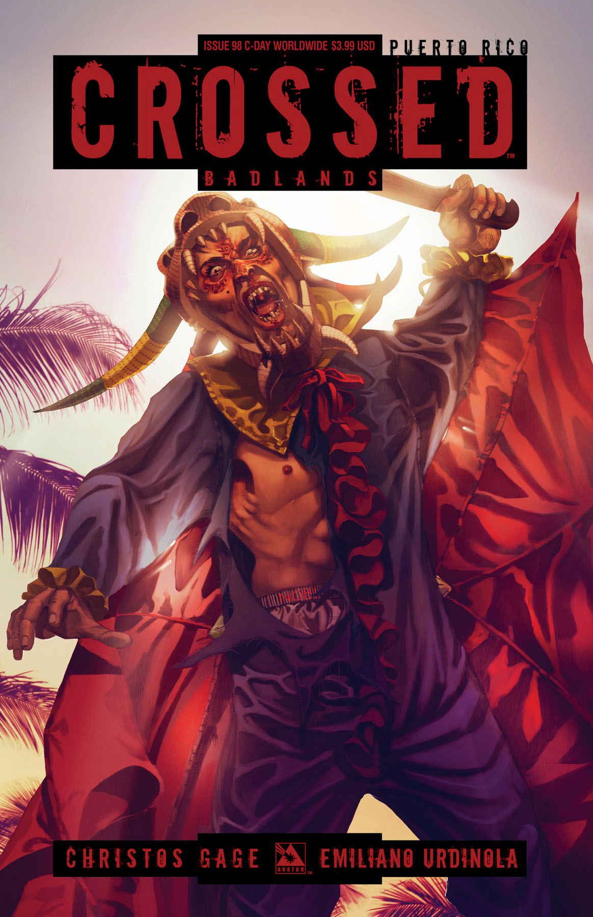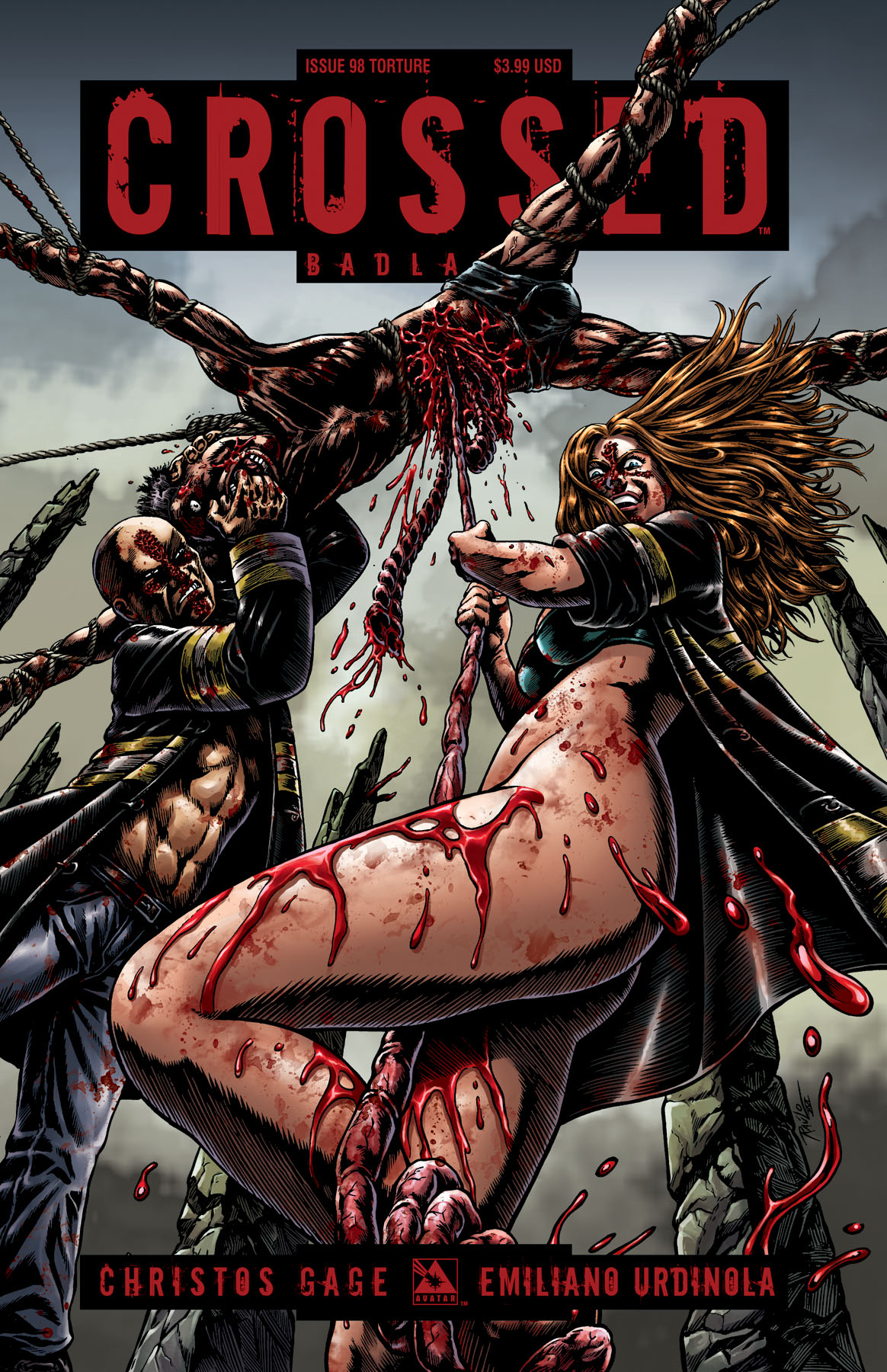 PRODUCT DESCRIPTION:    Christos Gage delivers a fiery return story to the world of the Crossed and the vicious alpha-infected, Smokey!   He’s found the smart girls, he’s found a place to farm and Smokey is preparing to settle in for the long-haul.  Can he pull off the first Crossed settlement?  If the Crossed are the inevitable creeping doom, Smokey is the unavoidable fate waiting for you in a world of misery and woe.  Available with Regular & Torture Cover by Raulo Caceres, Wraparound Cover by Daniel Gete, Art Deco Cover by Michael DiPascale,  C-Day Worldwide Cover by German Nobile, and Red Crossed Incentive Cover also by Caceres.