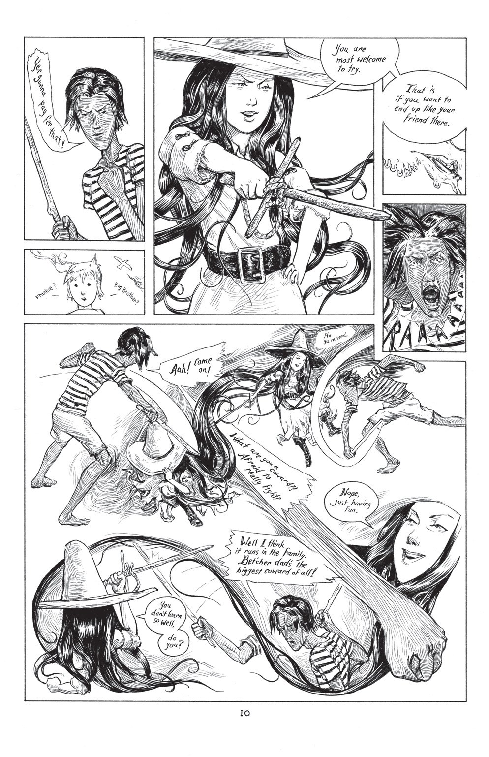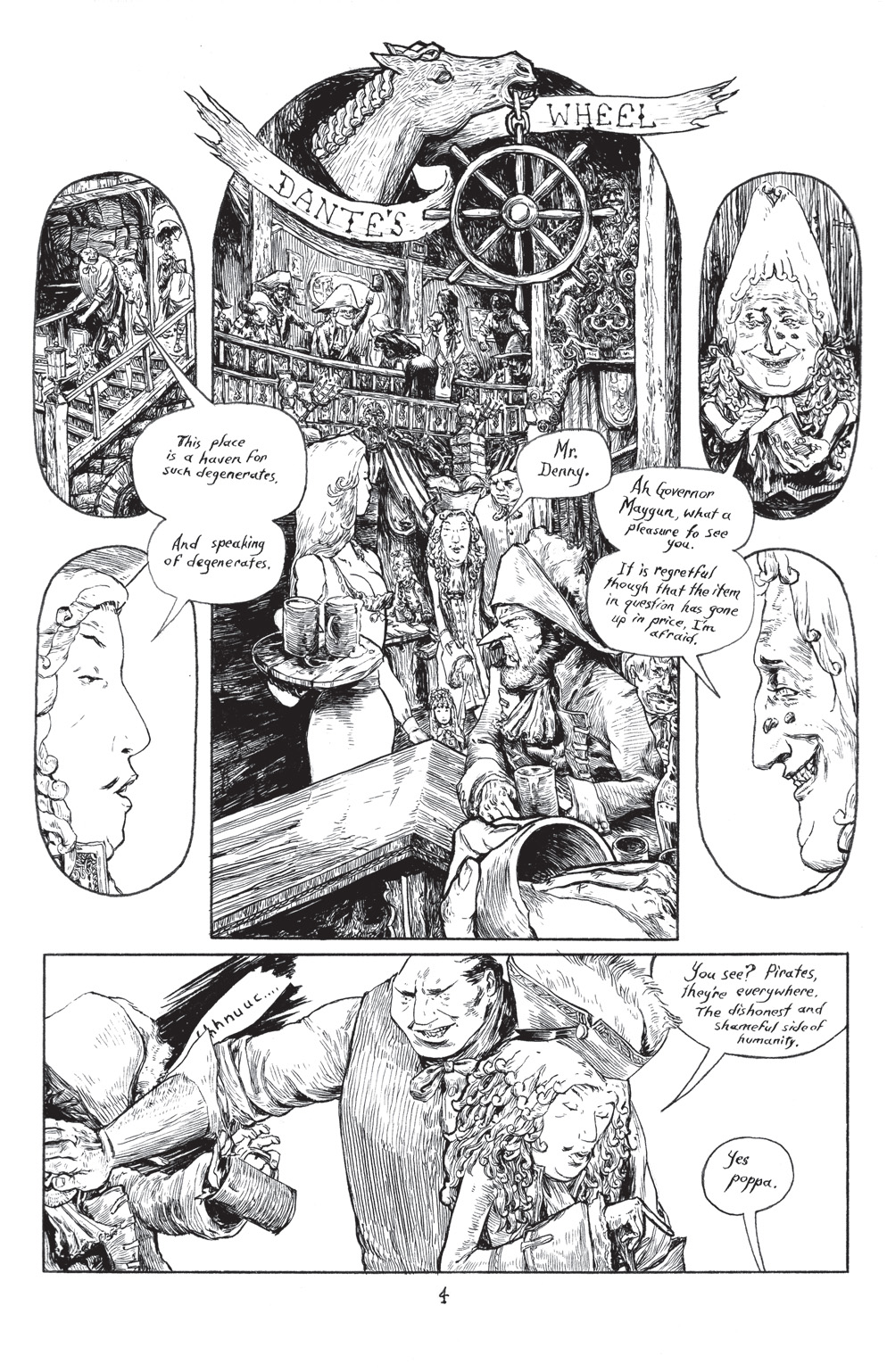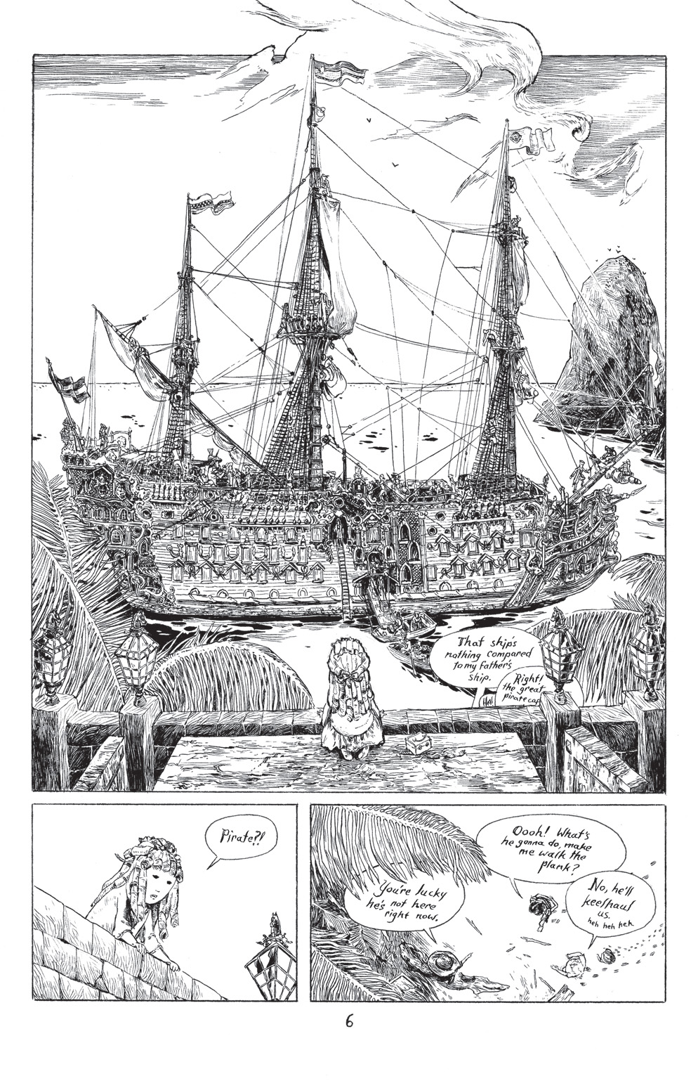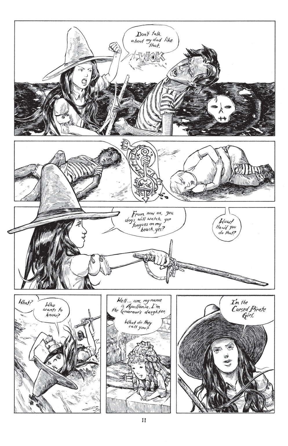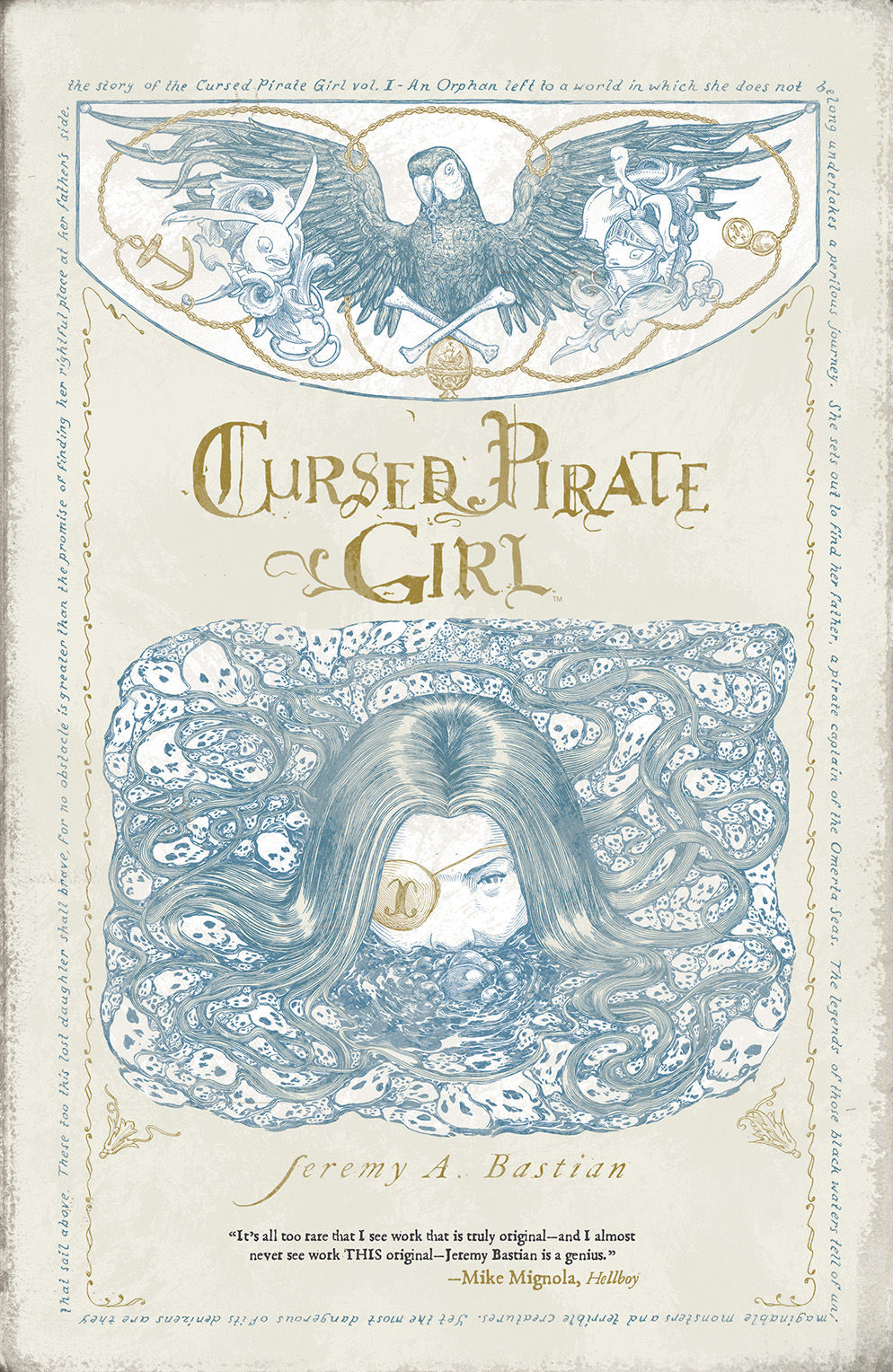 Available for the first time ever in a softcover trade paperback, Jeremy A. Bastian’s beautiful, astonishingly detailed line work is on display in his magnum opus Cursed Pirate Girl, a black-and-white original graphic novel about a girl on a quest in search of her father. It’s a journey filled with adventure above and below the mythical waters of the Omerta Seas. A nautical fairytale of strange creatures, whimsical characters, swashbuckling danger, and the most bizarre pirates you could hope for. It’s certain to amaze and captivate adults and children alike!