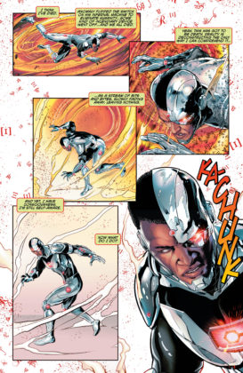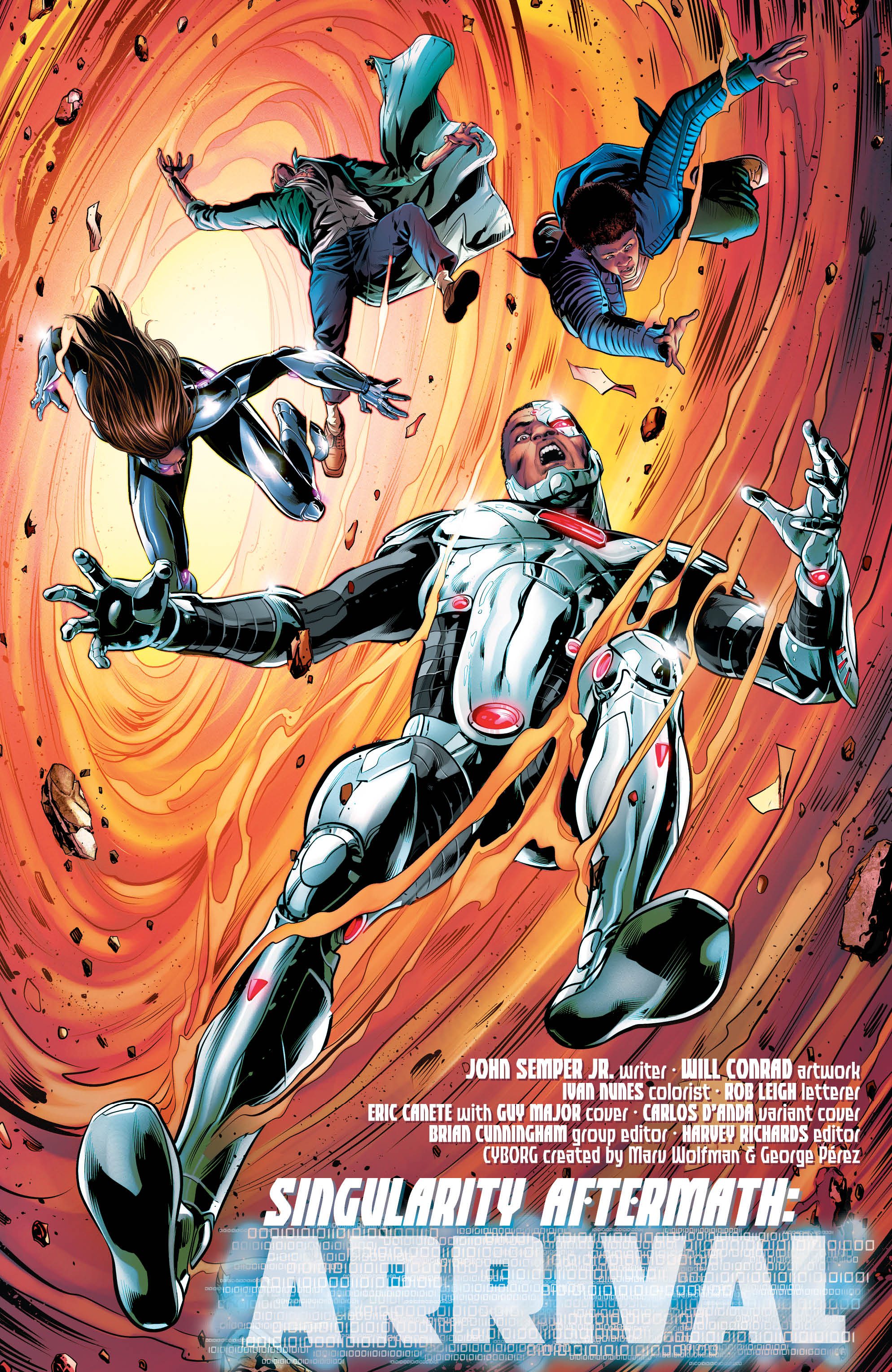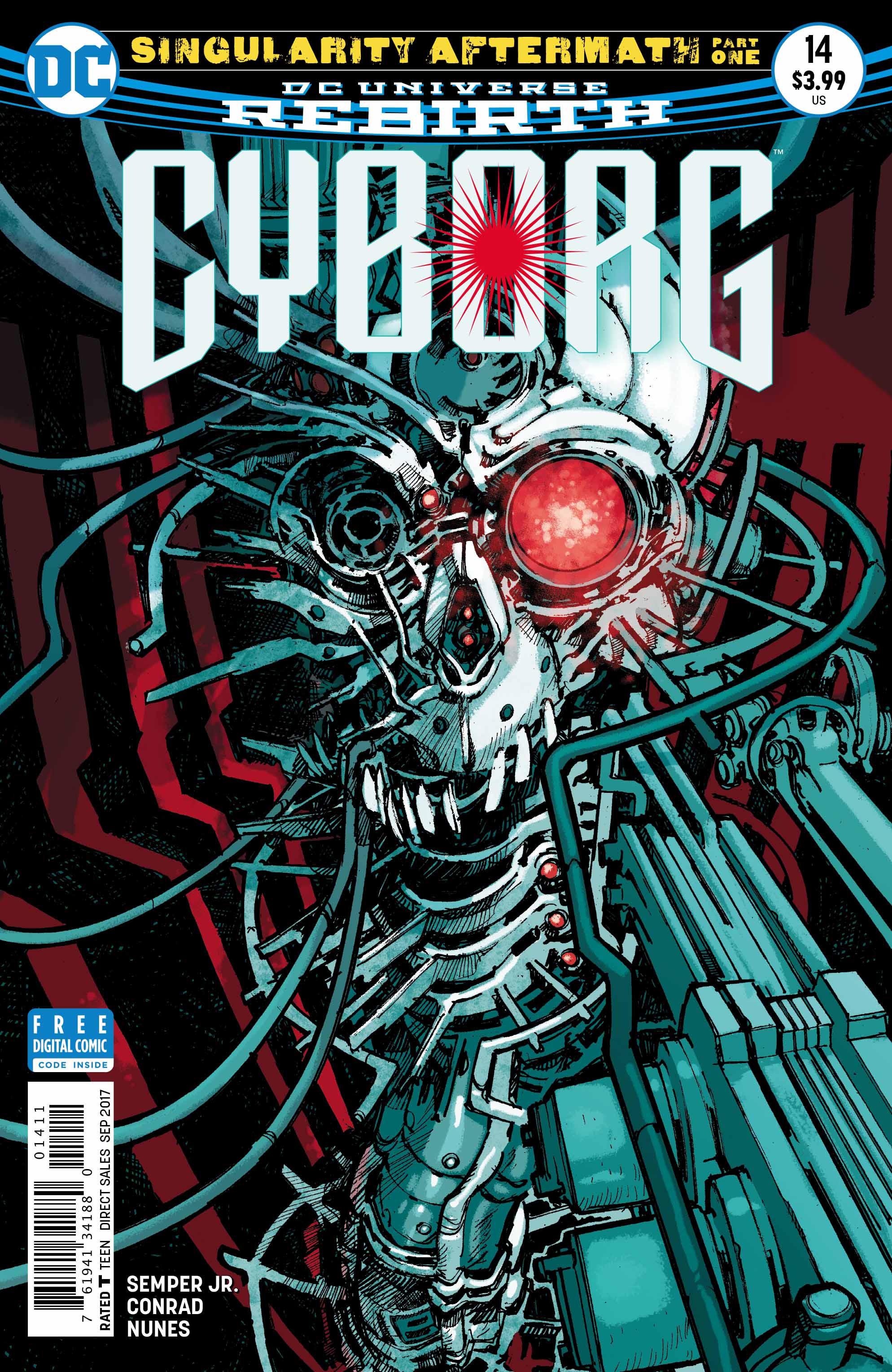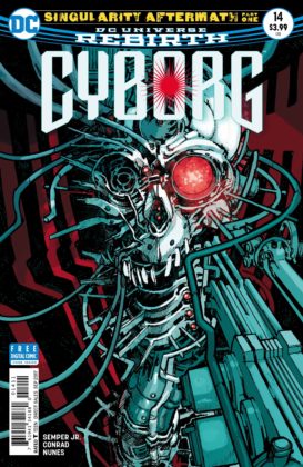 “SINGULARITY AFTERMATH” part one! Mankind is dead! The world as we know it is gone! Welcome to Planet Anomaly, where all life takes the form of soulless cybernetic hybrids. But one spark of humanity remains deep within Cyborg’s robotic husk, and it’s the world’s only hope for restoration. Guest-starring Beast Boy!