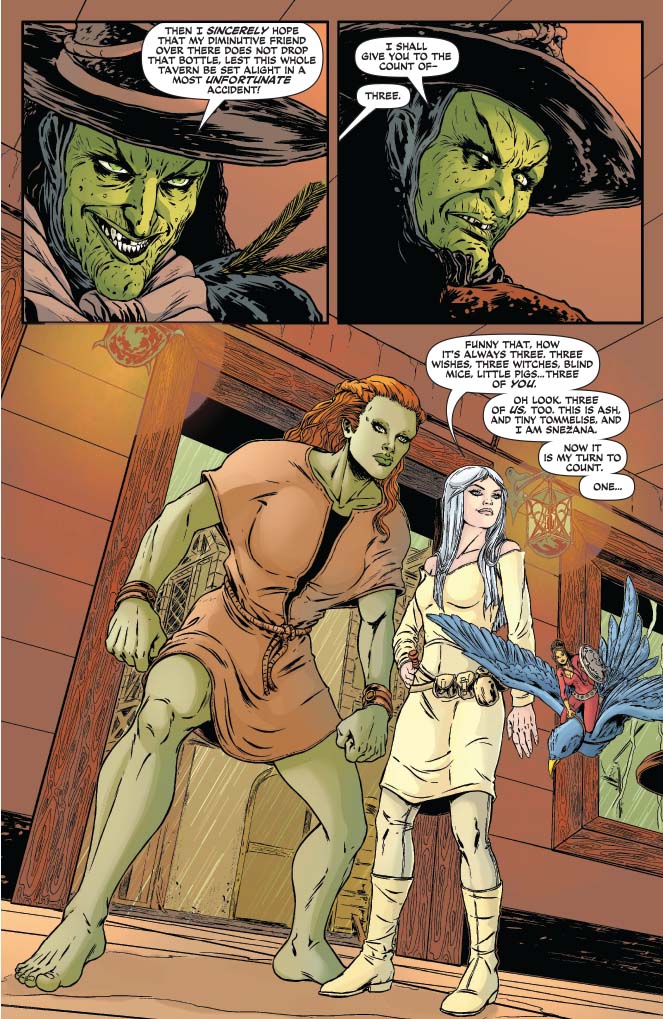 Weeks have passed since the defeat of the witch Belladonna, yet “Happily Ever After” is still out of reach for Rapa, the once-and-future Queen Rapunzel. The wandering adventurer chafes in the trappings of her royal station, her heart yearning to once again roam the roads and wilderness of her magical world. However, her path is not at all safe… for the witches Gothel and Carabosse have formed a new black coven, and are amassing a new army of the wicked!