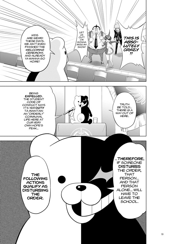 Each year, the elite Hope’s Peak Academy selects only the most gifted and talented students to enroll . . . plus one ordinary student, chosen by lottery. Makoto Naegi was that lucky person—or so he thought! When he shows up for class, he finds the elite students are a bizarre cast of oddballs under the ruthless authority of a robot teddy bear principal, Monokuma. The bear lays down the school rules: the only way out of Hope’s Peak is to not only murder another student . . . but get away with it, as every murder is followed by a tribunal where the surviving students cross-examine each other!