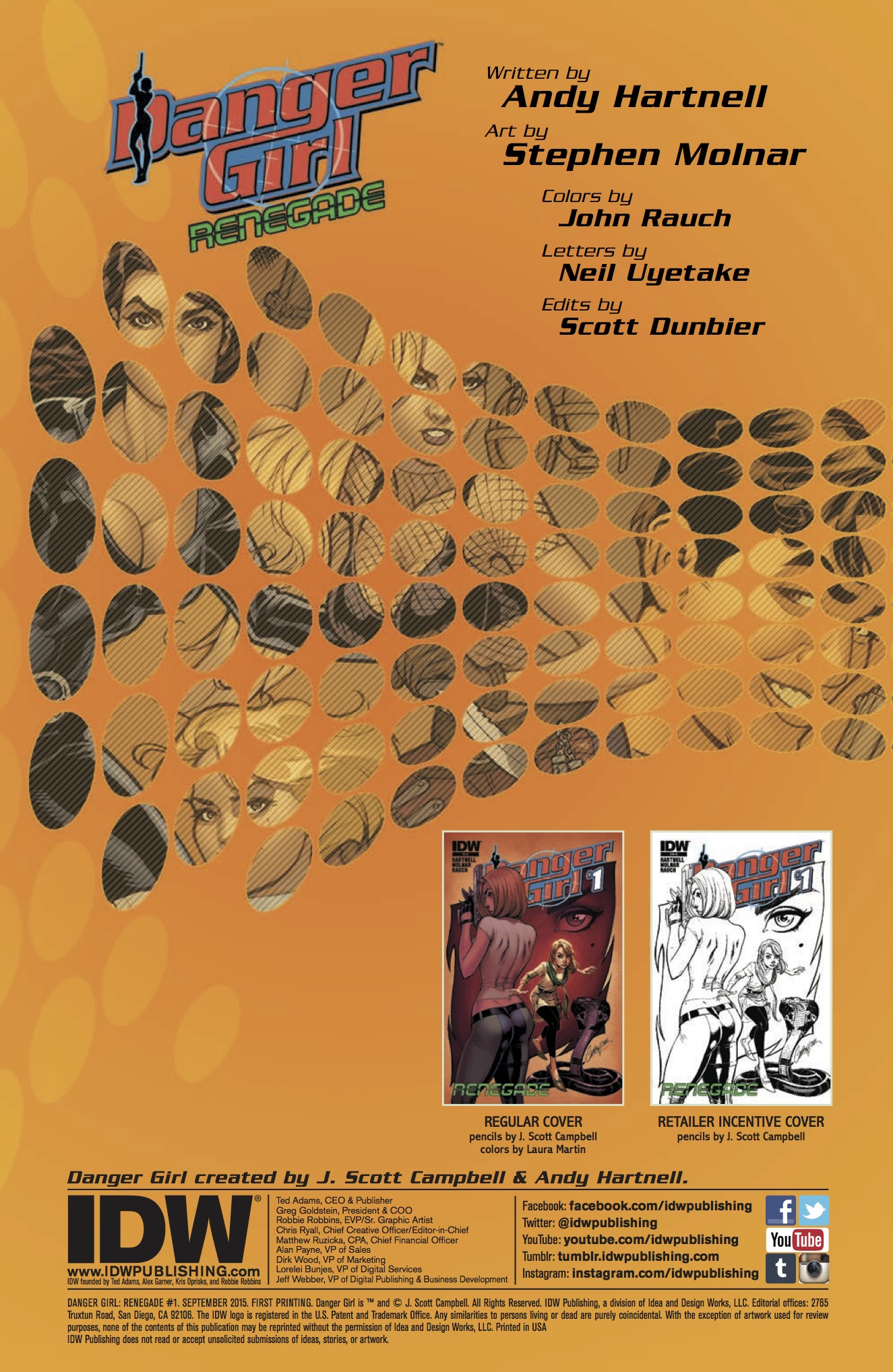 Abbey Chase is renowned across the globe as a brilliant young archeologist and (a bit less renowned) as a member of the super-secret spy organization known as Danger. But what set of circumstances lead Abbey to become who she is—who trained and shaped her into the remarkable person she is? Now, for the first time ever, Danger Girl readers will find out the answer to these questions and more… in Danger Girl: Renegade!