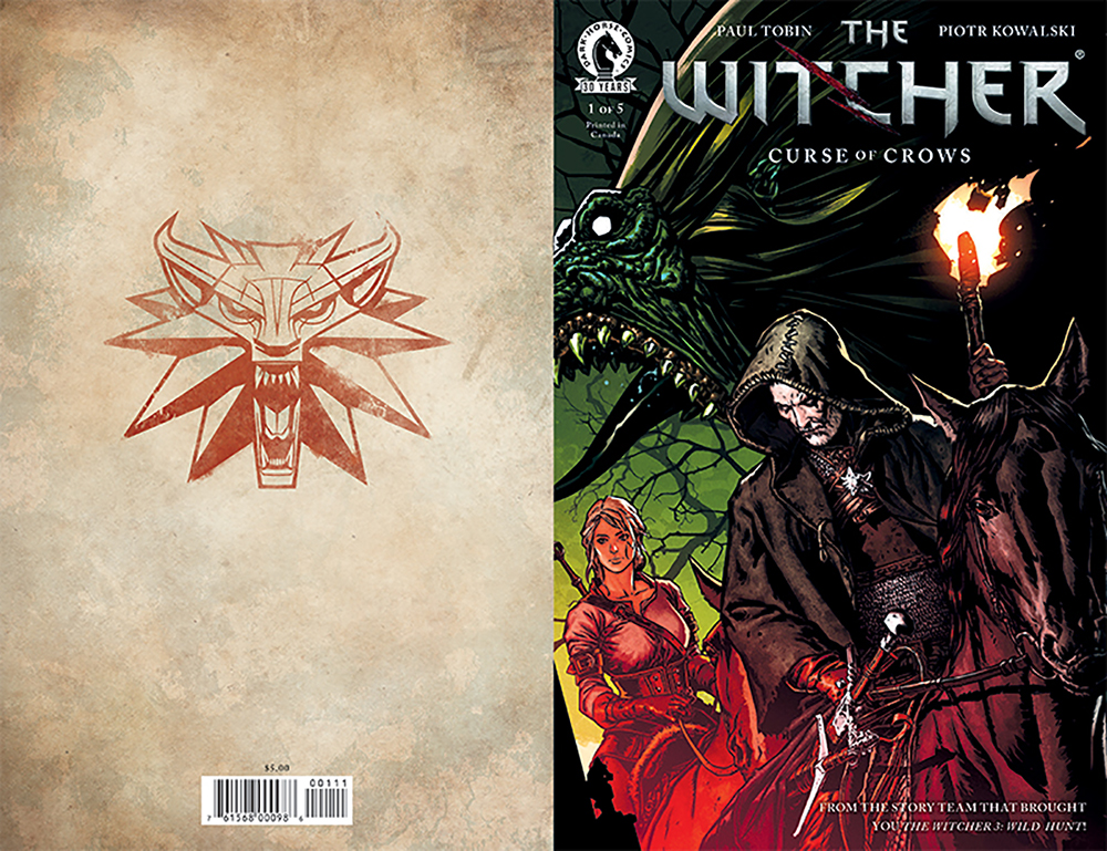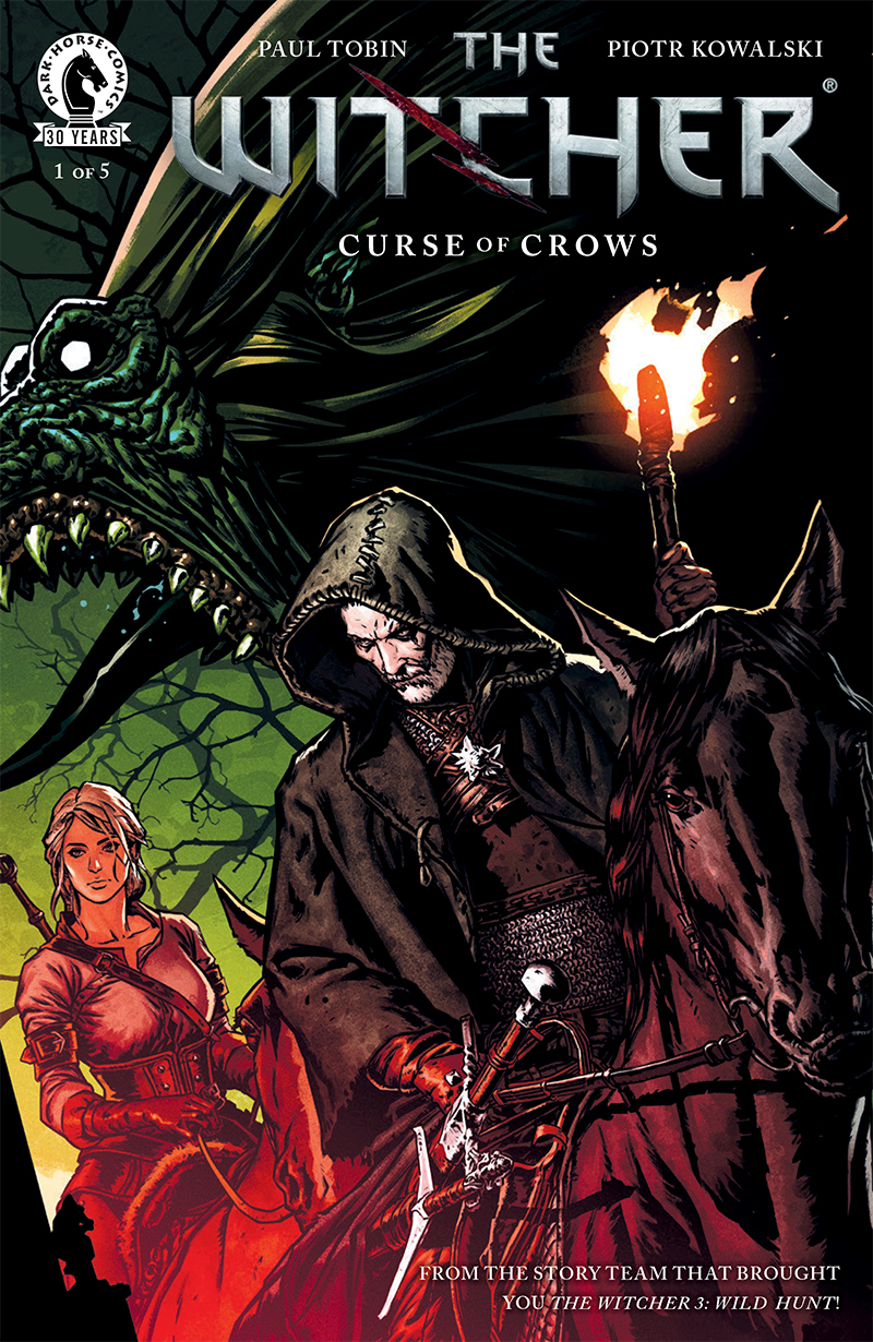 Curse of Crows explores the dark and gritty world of the popular video game series. Geralt and Ciri are embroiled in a battle for revenge as they travel to Novigard while hunting monsters. During their journey, the Witchers save a young woman from a troll, but Geralt and Ciri quickly discover she is more than what she seems. Eisner nominee Paul Tobin (BandetteMystery Girl) writes Curse of Crows, Piotr Kowalski (The Steam ManSEX) lends his illustration skills, Brad Simpson (Catalyst ComixSEX) colors the series, and Nate Piekos (Umbrella AcademyAtland) letters it. The story team behind the game also co-wrote the series.