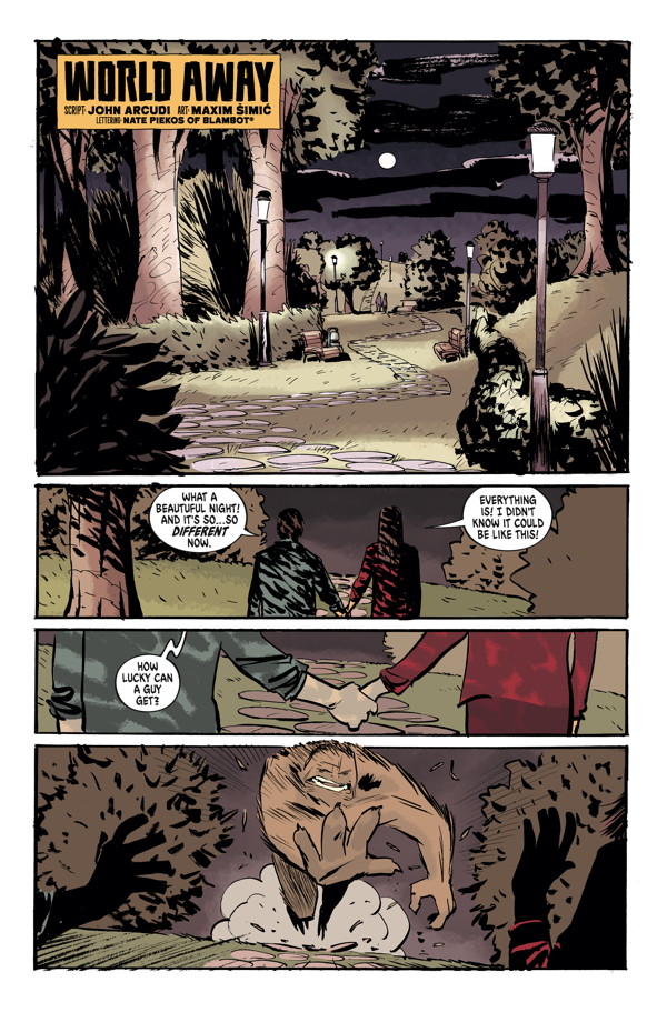 Appearances aren’t everything in the new story World Away by writer John Arcudi and artist Maxim Šimi! Pop-star spies also come to DHP in Adam P. Knave, D.J. Kirkbride, and Robert Wilson IV’s Laser Joan and the Rayguns!