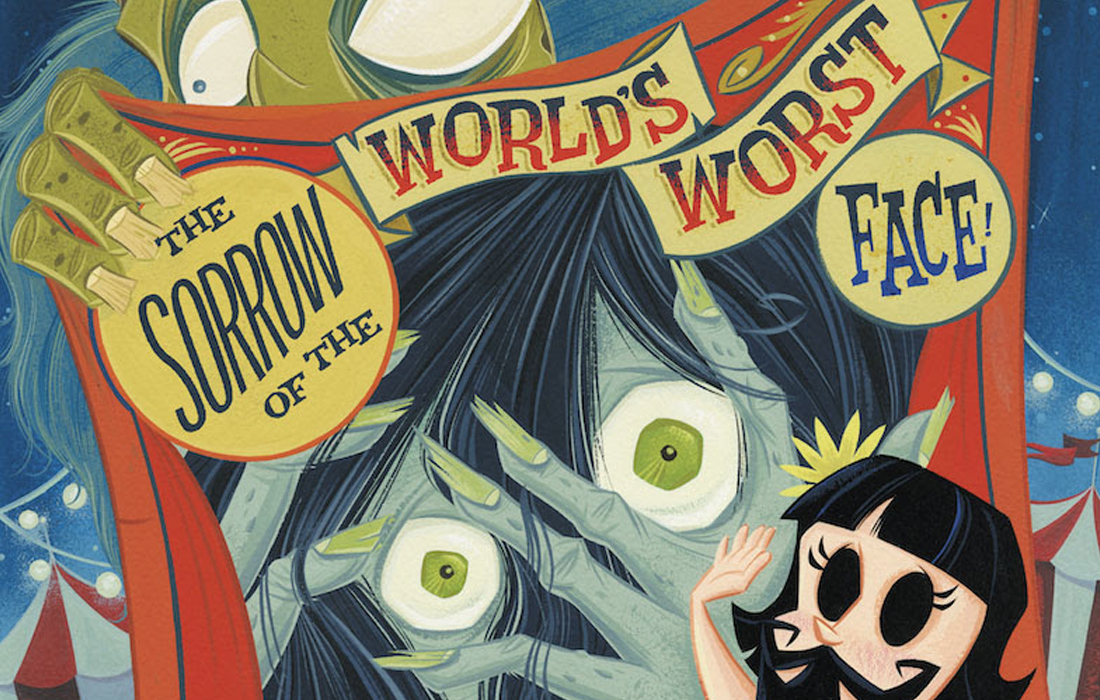 Chimichanga creator Eric Powell explained the creative process behind the new series, The Sorrow of the World’s Worst Face, to Kiel Phegley at Comic Book Resources: “Lula is such a bubbly and positive character, even though she lives in that setting. It’s one of the things I wanted to do with the whole Chimichanga series — give kids the kind of character they don’t normally get. Lula is a chubby little girl with a beard, so she’s not your stereotypical kind of hero. She’s completely cool with the way she is, and she’s happy about it. I’m kind of playing against that with The Sorrow of the World’s Worst Face because she comes into contact with someone who is the exact opposite and is pretty angry about it. I think that was the theme of this series.”