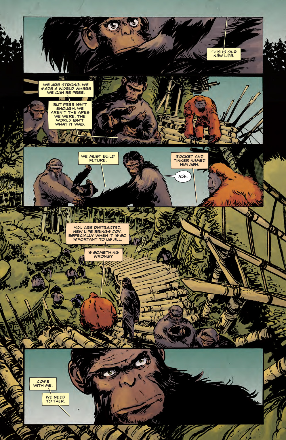 What It Is: Two years following the events of Rise of the Planet of the Apes, humanity has fallen, giving way to the dawn of Caesar’s civilization. While the apes of the world find themselves unable to advance as a species, Caesar and Koba work tirelessly to find a way to unify them to join their cause. On the other side of the country, Malcolm must venture into the decaying Americas with his family to find a cure for the plague slowly killing his wife while world powers shift and civilizations simultaneously collapse and rise. Collects the entire six-issue miniseries.