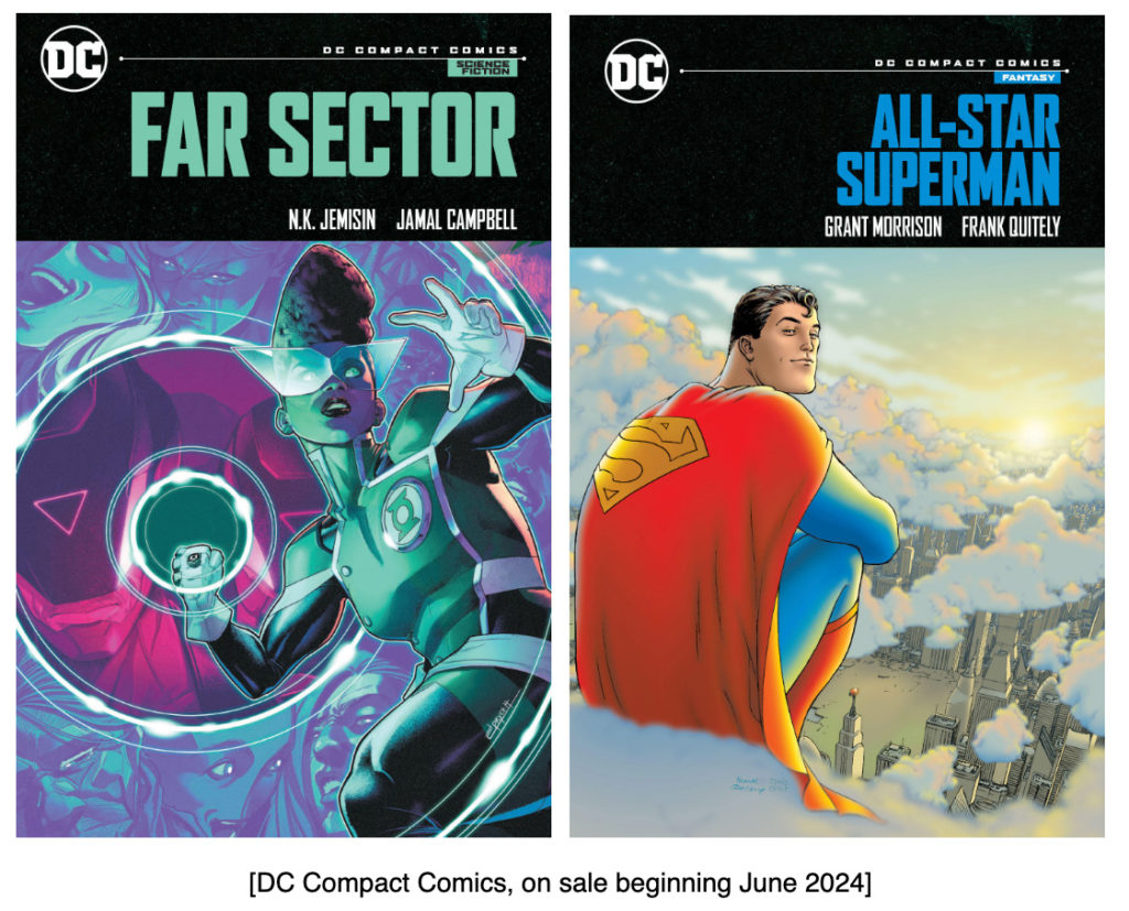 The new line will showcase DC stories across many genres, including science fiction, thrillers, horror, fantasy, adventure, and mystery. Featured among the DC Compact Comics launch titles in 2024 are DC’s recent Hugo Award-winning sci-fi graphic novel Far Sector by N.K. Jemisin and Jamal Campbell, along with perennial classic graphic novels like Catwoman: Trail of the Catwoman, Batman: Hush, Batman: The Court of Owls, and more.