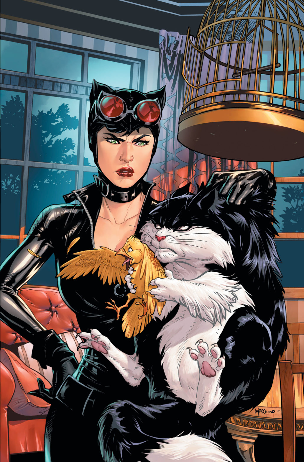 In his relentless pursuit of Tweety, Sylvester suddenly finds himself with a new, human ally—Catwoman! Tweety then realizes that he’s going to need some help too, and recruits a super-hero of his own, Black Canary! It isn’t long before the scale of the conflict begins to get out of control and suddenly there’s a full-scale war between cats and birds that threatens to take over all of Gotham.