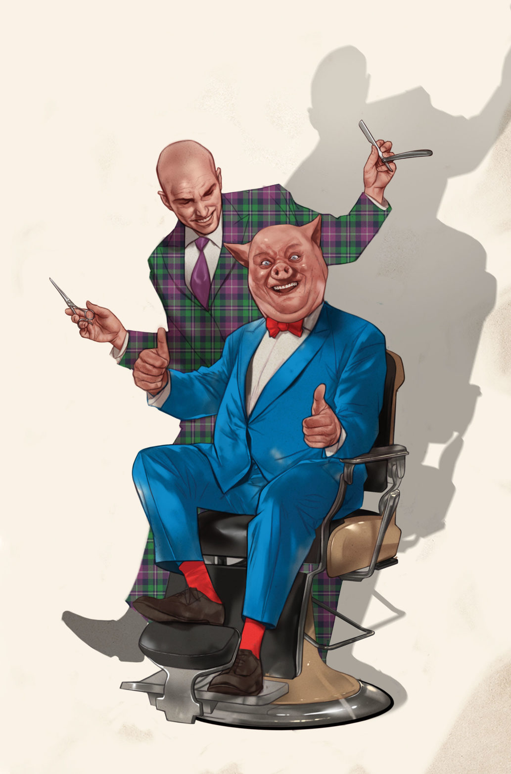 Facing financial and personal ruin, a desperate Porky Pig applies for and gets and entry-level position with LexCorp. Grateful to his new benefactor, Porky becomes Luthor’s most loyal employee and defender. But when a major scandal breaks in the news and Lex is called before a Congressional Committee, guess who is about to be offered up as the sacrificial pig?